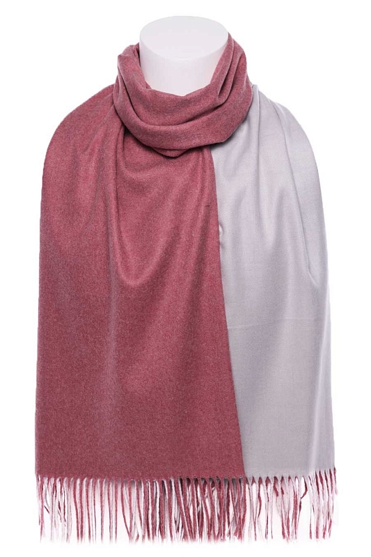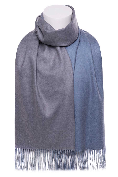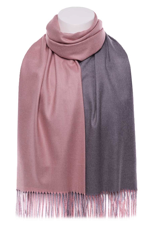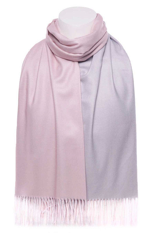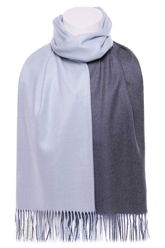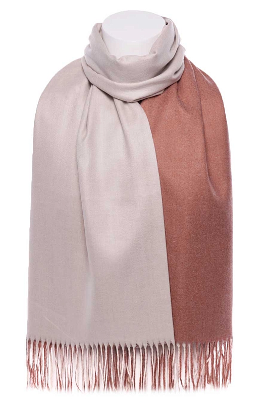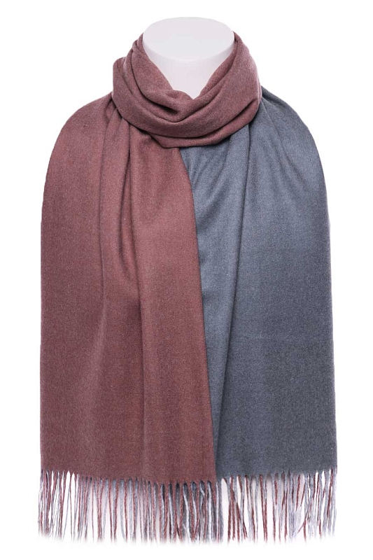 Палантин мягкий, плотный, двухсторонний. Одна сторона - один цвет, другая сторона - другой цвет. На фото показана одна и другая сторона палантина. Края палантина заканчиваются кромкой, концы - бахрома.