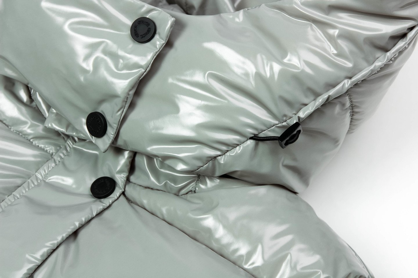 Модный и стильный женский пуховик уже давно стал неотъемлемой частью гардероба на холодное время года. Современные модели женских зимних пуховиков сочетают в себе практичность, качество и соответствие самым актуальным тенденциям. Изделия из лакированной ткани этой зимой действительно будут популярны. Они красивые, яркие и эффектные. К тому же, за счет своего объема и длины в них тебе точно не придется мерзнуть. Высокий воротник-стойка, удобный капюшон с застежкой спереди, застёжка-молния под планкой - особенности данной модели. Планка и карманы застегиваются на кнопки. Утеплитель синтепух-синтетический пух. Температурный режим до -25.