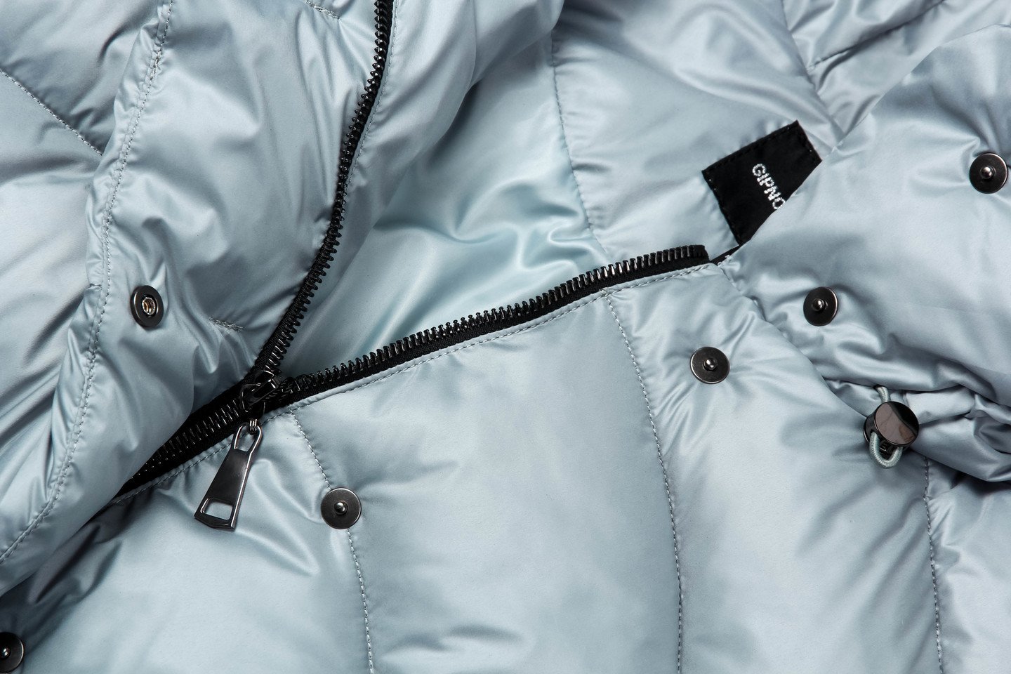 потайной кнопке. Большой и уютный капюшон. Застежка на молнию и потайные кнопки. Утеплитель синтепух-синтетический пух. Температурный режим до -25.
