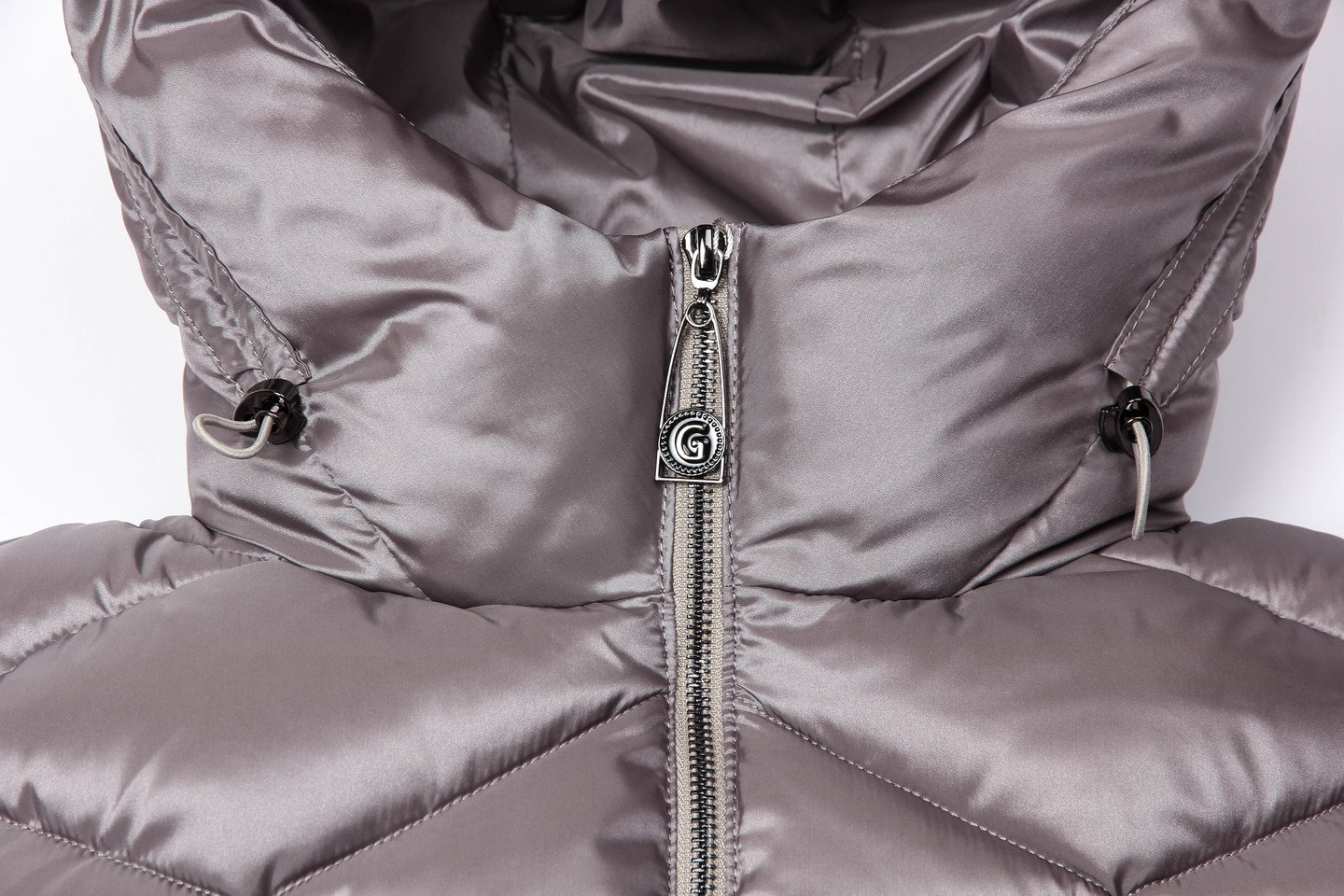 Пуховик, как часть образа, держится на пике популярности уже не первый год. В нем не только теп-ло, но и достаточно комфортно. Бренды все чаще выпускают новинки, которые больше близки к классическому стилю. Их плюс в том, что такие модели можно сочетать абсолютно с любыми ве-щами – юбками, платьями, брюками, а также грубыми ботиками. Так называемая база среди пухо-виков. Наша модель умеренного объема, силуэт – прямой, слегка приталенный. Покрой рукава втачной, низ рукава с трикотажной манжетой. Застежка на молнию. Внутри капюшона воротник-стойка. Изделие достаточно длинное, чтобы согреть в морозную погоду. По боковым швам – разре-зы, застегивающиеся на скрытую молнию, что позволяет регулировать ширину по линии низа. Комбинированные линии стежки, брендовая фурнитура делают модель достаточно оригинальной. Утеплитель синтепух – синтетический пух, дополнительно на подкладке термофин, плотность 60. Температурный режим до -25.