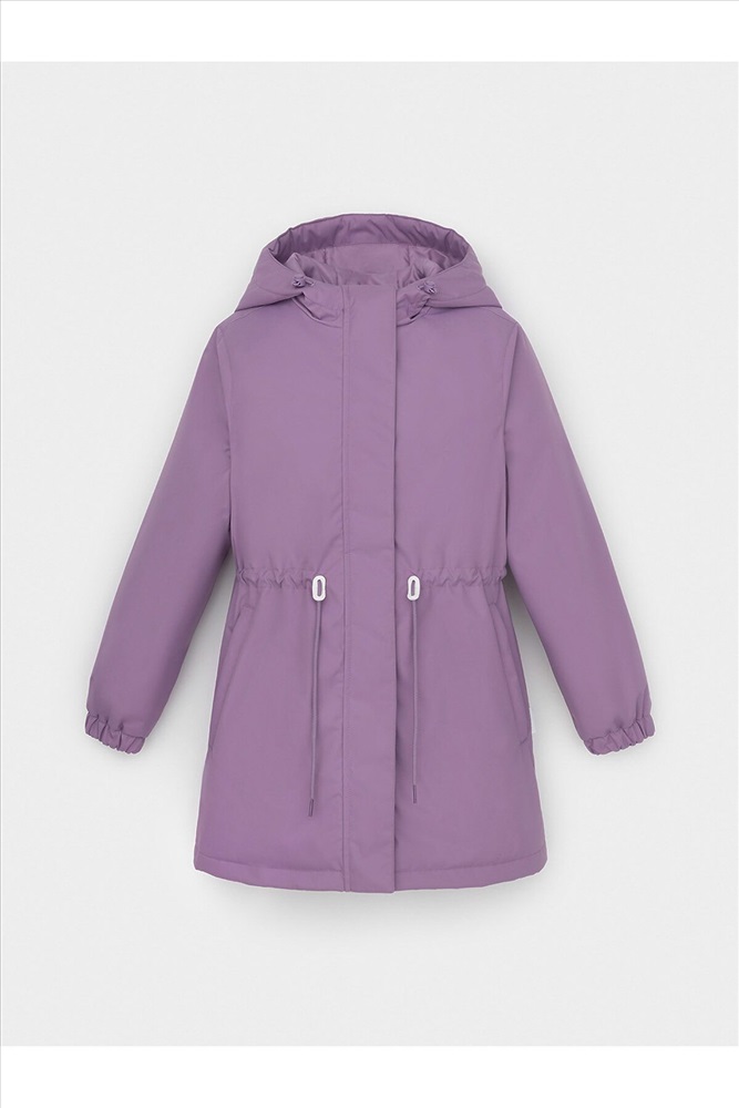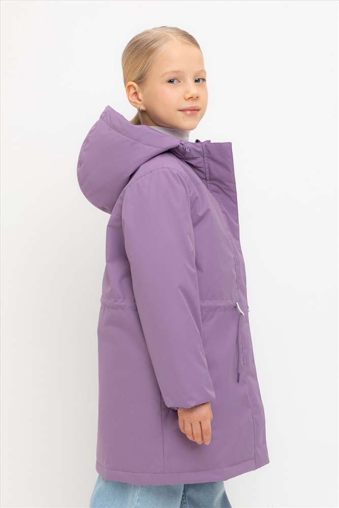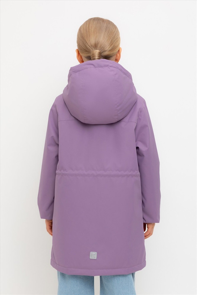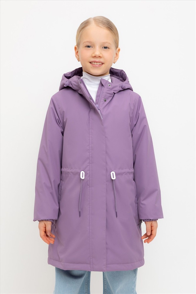 Демисезонное пальто для девочки с утеплителем SEE®: 120 г/м2. Выполнена из мембранной, фактурной ткани с дополнительной тефлоновой обработкой. Данный вид обработки предохраняет изделие от загрязнения и лучше отводит влагу. Подклад из 100% полиэстера. У изделия предусмотрена защита подбородка. Несъемный капюшон регулируется с помощью эластичного шнура со стопперами. Низ рукавов на эластичной резинке для лучшего прилегания. На талии утяжка при помощи шнура со стопперами. Боковые карманы на молнии. Во всех изделиях верхнего ассортимента для безопасности ребенка предусмотрены светоотражающие элементы.