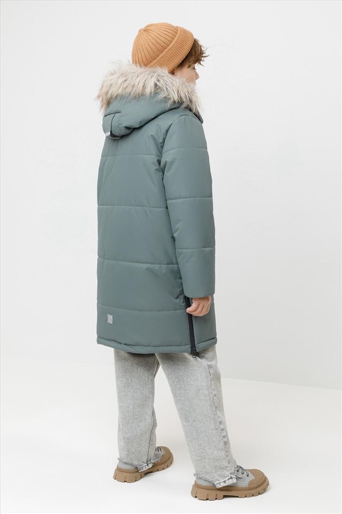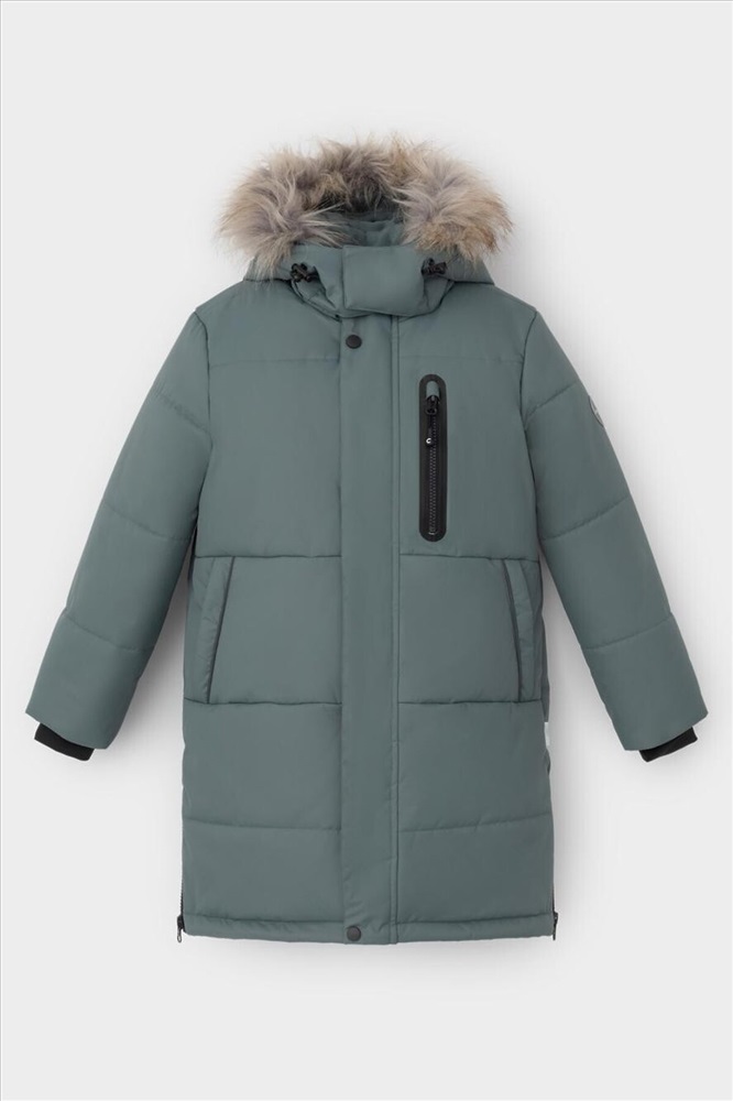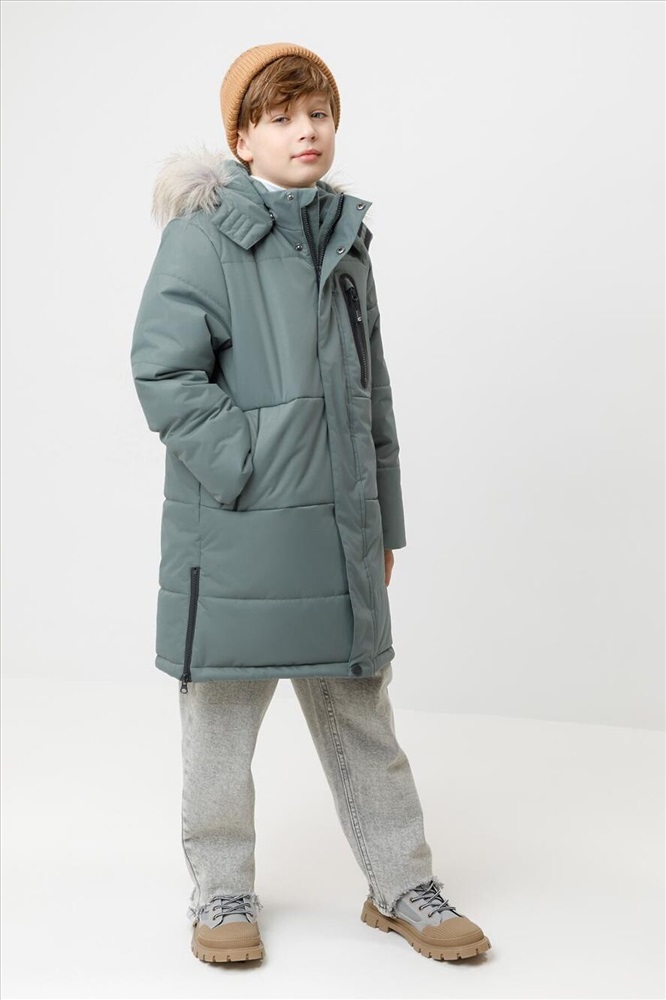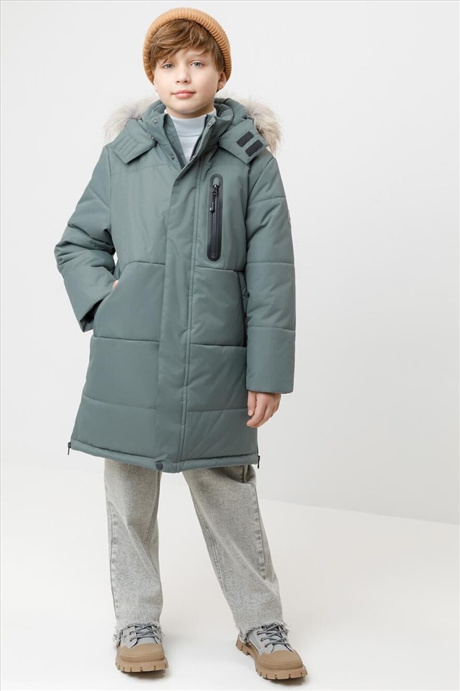 Зимнее пальто для мальчика с утеплителем SEE®: 300 г/м2. Выполнено из мембранной ткани с дополнительной тефлоновой обработкой, которая предохраняет изделие от загрязнений и отталкивает влагу. Подклад выполнен из 100% полиэстера Tricot. Пальто застёгивается на молнию и внешнюю планку с кнопками. Съёмный капюшон имеет эластичную утяжку со стопперами и отстёгивающийся мех на молнии, регулируется по глубине с помощью липучки. На рукавах внутренние эластичные манжеты. По бокам два кармана на молниях и один карман на груди. Во всех изделиях верхнего ассортимента для безопасности ребёнка предусмотрены светоотражающие элементы.