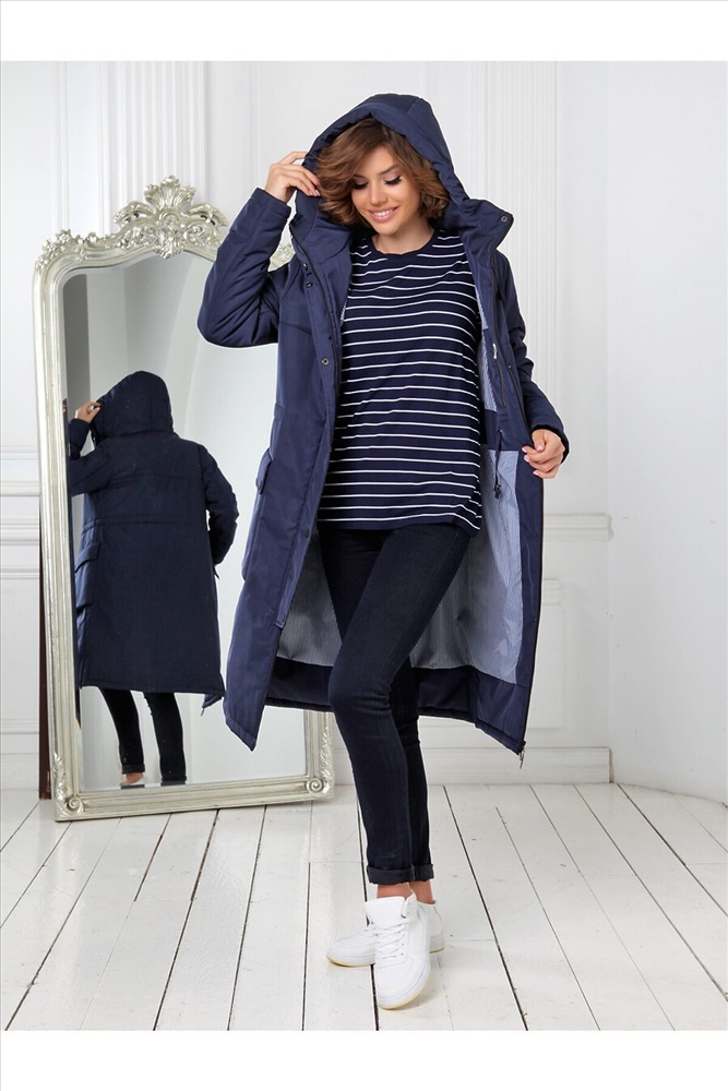 ID товара: 905053 Состав: 100% Полиэстер Сезон: Осень/Зима Длина: Средняя Фасон: Прямой Рукав: длинные Вид застежки: Молния Подкладка: 100% полиэстер Тип карманов: есть Утеплитель: Alpolux 150 гр/м Стиль: Повседневный Уход: бережная стирка при 30 градусах Температура комфорта от: 0 Температура комфорта до: +10 Страна бренда: Россия Страна производства: Беларусь Длинное пальто прямого силуэта с застежкой на двухзамковую молнию, обеспечивающую удобство при ходьбе, и кнопки на ветрозащитной планке. Воротник - стойка, переходящая в регулируемый капюшон. Это демисезонное пальто подходит для женщин и девушек любого возраста. Свободный прямой силуэт можно легко изменить с помощью внутренней кулиски в области талии. Накладные карманы с клапанами застегиваются на кнопки. Есть внутренний кармашек на молнии. Плащевая ткань имеет водоотталкивающую пропитку, которая выдержит небольшой осенний дождь или снег. Утеплитель нового поколения ALPOLUX, в состав которого входит натуральная шерсть, плотностью 150 гр/м защитит от холода и ветра. Подкладка в изделии - в мелкую полоску. Широкий кожаный пояс на модели в серо-голубом пальто В КОМПЛЕКТ НЕ ВХОДИТ, но Вы можете фантазировать с имеющимися аксессуарами, тем самым внося разнообразие в стилистику изделия. Комментарии к товару