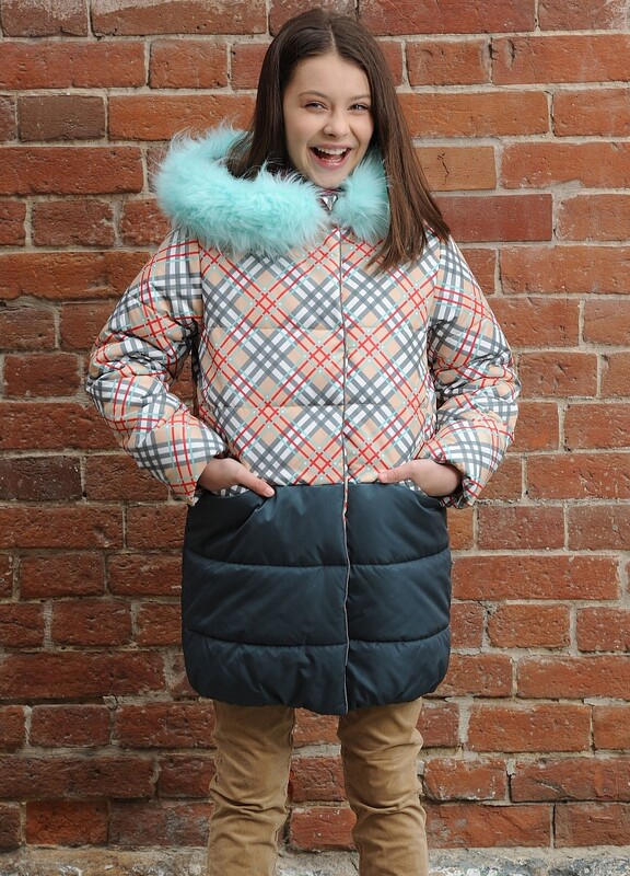 Пальто для девочек.Рекомендованный температурный режим: не ниже -15°С. Силуэт "овал"- ХИТ! Втачной капюшон, совмещенный с воротником. Меховая опушка съемная. Боковые карманы с листочкой вшиты в горизонтальный подрез переда. Низ изделия присобран на эластичную резину.