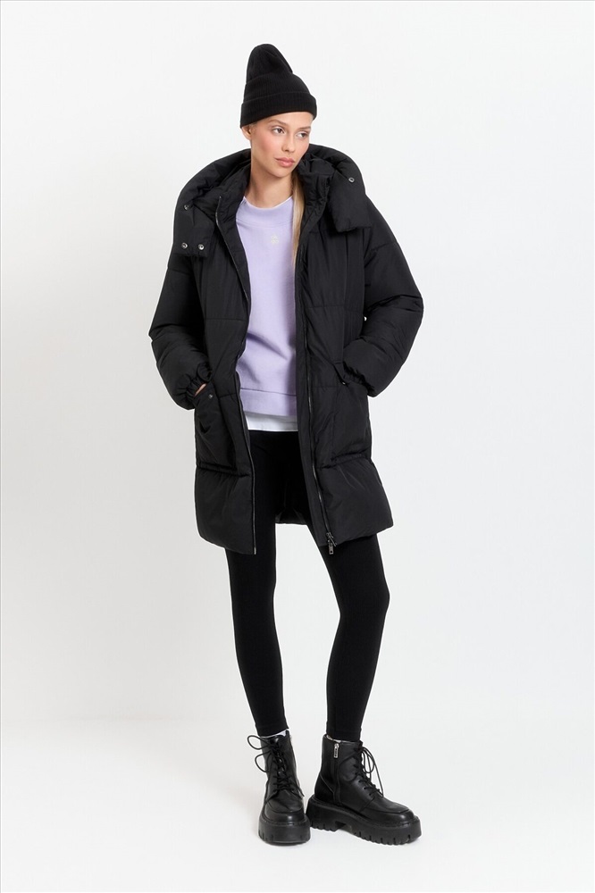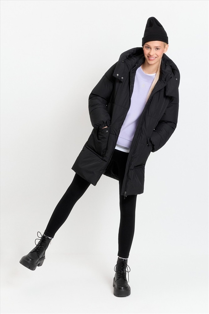 ID товара: 1074758 Состав: 100% Полиэстер Сезон: Осень/Зима Длина: Средняя Фасон: Прямой Рукав: длинные Вид застежки: Молния Тип карманов: Накладные Декоративные элементы: С капюшоном Утеплитель: с утеплителем Стиль: повседневный Страна бренда: Россия Страна производства: Китай Пальто жен. Rimo_H черный Комментарии к товару