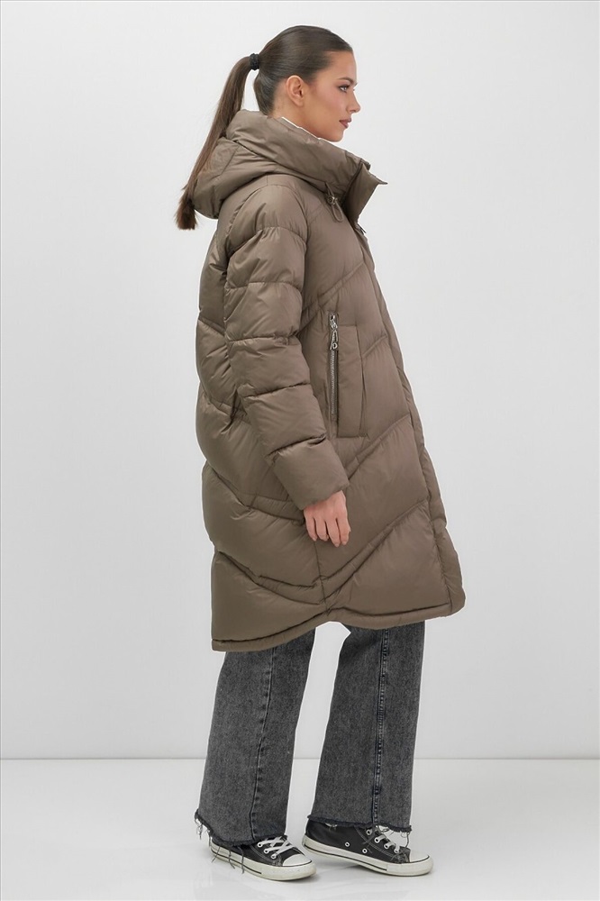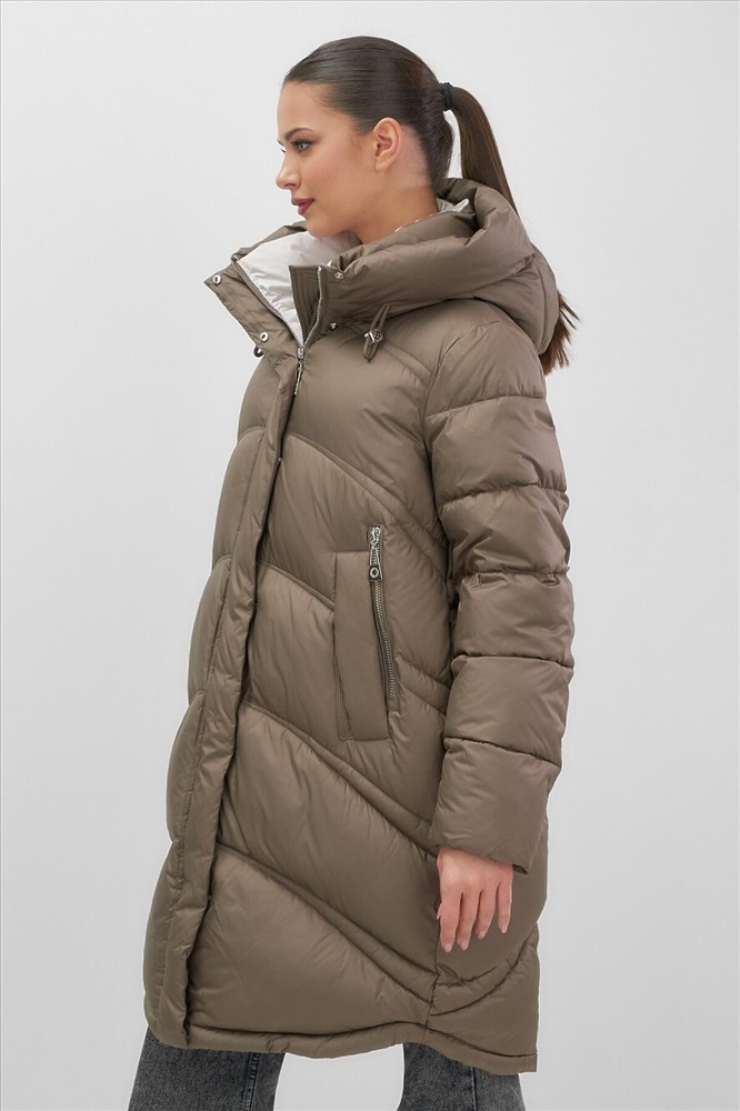 ID товара: 1135173 Состав: 100% Полиэстер Сезон: Осень/Зима Длина: Удлиненная Рукав: Длинные Вид застежки: Молния Подкладка: Полиэстр Тип карманов: Прорезные Утеплитель: с утеплителем Стиль: повседневный Реком. темп. режим: до -25ºС Покрой: Прямой/свободный Мембрана: Да Внутренние карманы: Есть Водонепроницаемость: 7000мм Страна бренда: Россия Страна производства: Китай Зимнее утепленное женское пальто с капюшоном – идеальный выбор для холодного сезона! Доступно в размерах от 46 до 54, это пальто выполнено из высококачественных мембранных материалов и 100% полиэстера, что обеспечивает отличную защиту от ветра и влаги (водонепроницаемость 7 000 мм). Утеплитель из синтепона с плотностью 220 г/кв.м гарантирует комфорт при температуре от 0° до -25°C. С стильным стоячим воротником и удлиненной длиной до колен, это пальто сочетает в себе элегантный и офисный стиль, а также подходит для повседневной носки. Не съемный капюшон и фиксирующие элементы по низу обеспечивают дополнительную защиту от непогоды. Внутренние карманы на молнии и кнопках обеспечивают удобство и безопасность ваших вещей. Особенности модели, такие как быстросохнущий и дышащий материал, делают его идеальным для активного использования. Выберите из четырех классических цветов: коричневый, черный, бежевый и хаки, и добавьте этот модный и функциональный элемент в свой гардероб! Пальто-куртка из коллекции осень-зима 2025 станет незаменимым спутником в холодное время года. Не упустите возможность приобрести стильное и практичное пальто, которое подчеркнет вашу индивидуальность и обеспечит комфорт в любую погоду! Комментарии к товару
