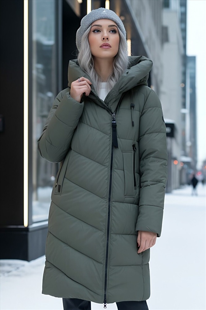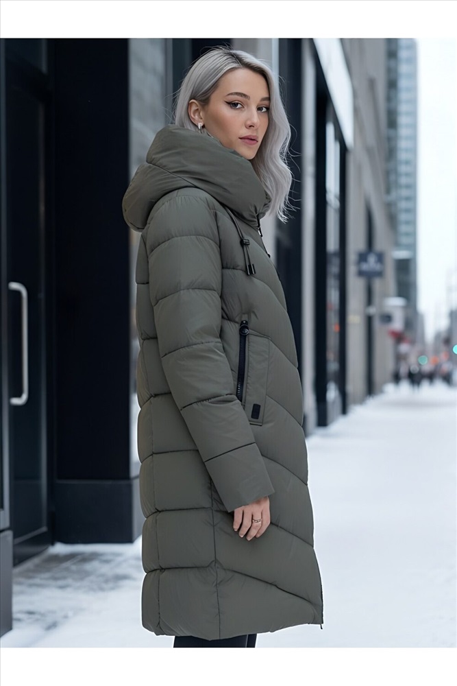 ID товара: 1224406 Сезон: Осень/Зима Длина: Удлиненная Рукав: Длинные Вид застежки: Молния Подкладка: Полиэстр Тип карманов: Прорезные Декоративные элементы: С капюшоном Утеплитель: с утеплителем Стиль: повседневный Покрой: Прямой/свободный Мембрана: Да Воротник: Капюшон Внутренние карманы: Есть Водонепроницаемость: 7000мм Страна бренда: Россия Страна производства: Китай Представляем зимнее утепленное пальто-куртку для женщин с капюшоном, идеально подходящее для холодного времени года. Доступно в размерах от 42 до 50, это пальто выполнено из высококачественных мембранных материалов, полиэстера и плащевки, что обеспечивает отличную защиту от влаги и холода. Состав 100% полиэстер гарантирует долговечность и комфорт при носке. Утеплитель из синтепона с плотностью 200 г/кв.м обеспечивает тепло в условиях температуры от +5° до -20°. Водонепроницаемость 7 000 мм делает модель идеальной для дождливой погоды. Пальто имеет удлиненный подол, длина которого достигает колена, и прямой/свободный покрой, что обеспечивает свободу движений. Капюшон не съемный и оснащен фиксатором, а внутренние карманы добавляют удобства. Двойная молния служит надежной застежкой, а проклеенные и прошитые внутренние швы усиливают защиту от ветра. Модель отличается элегантным офисным и повседневным стилем, а гладкая стеганая фактура материала придает ей современный вид. Доступные цвета: черный, хаки, бежевый и темно-коричневый. Пальто-куртка является быстросохнущей, водоотталкивающей и гипоаллергенной, что делает его идеальным выбором для активных женщин. Подходит для осенне-зимнего сезона 2025. Не упустите возможность приобрести это стильное и функциональное утепленное пальто для комфортного зимнего образа! Комментарии к товару