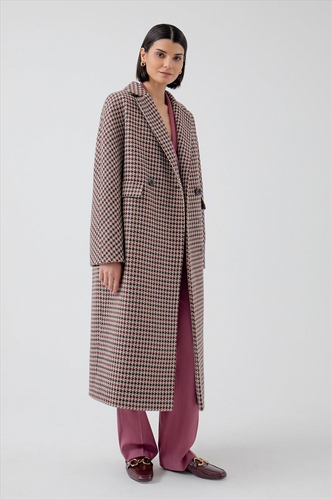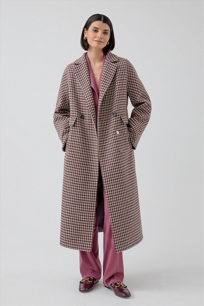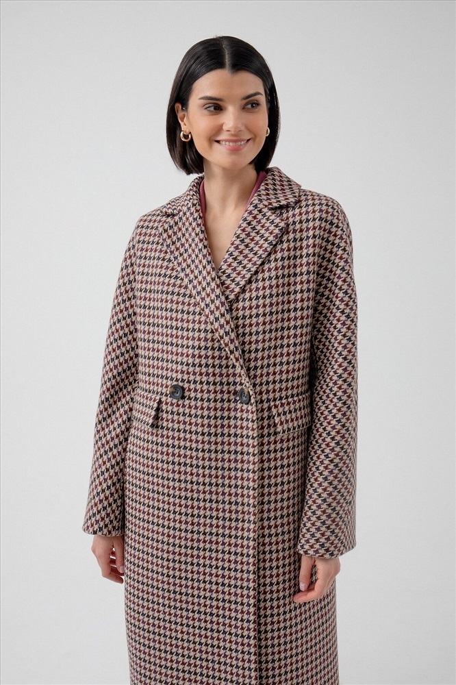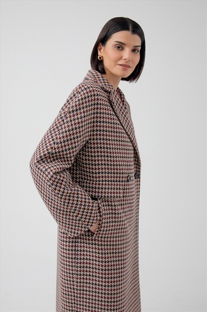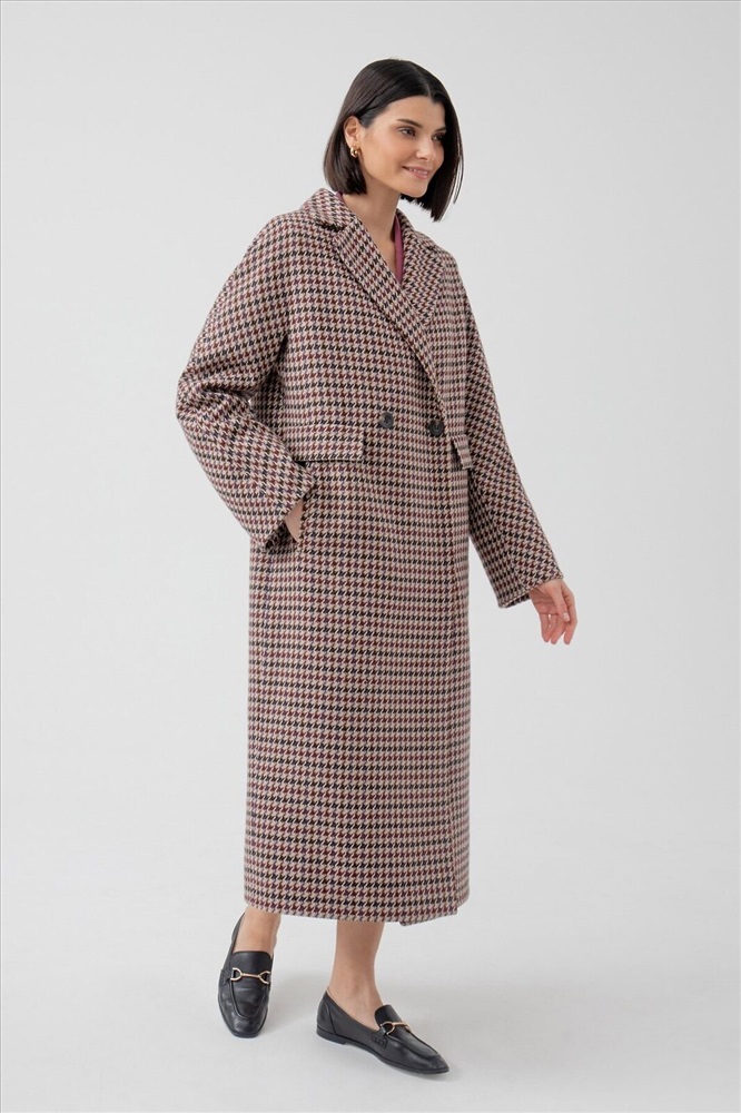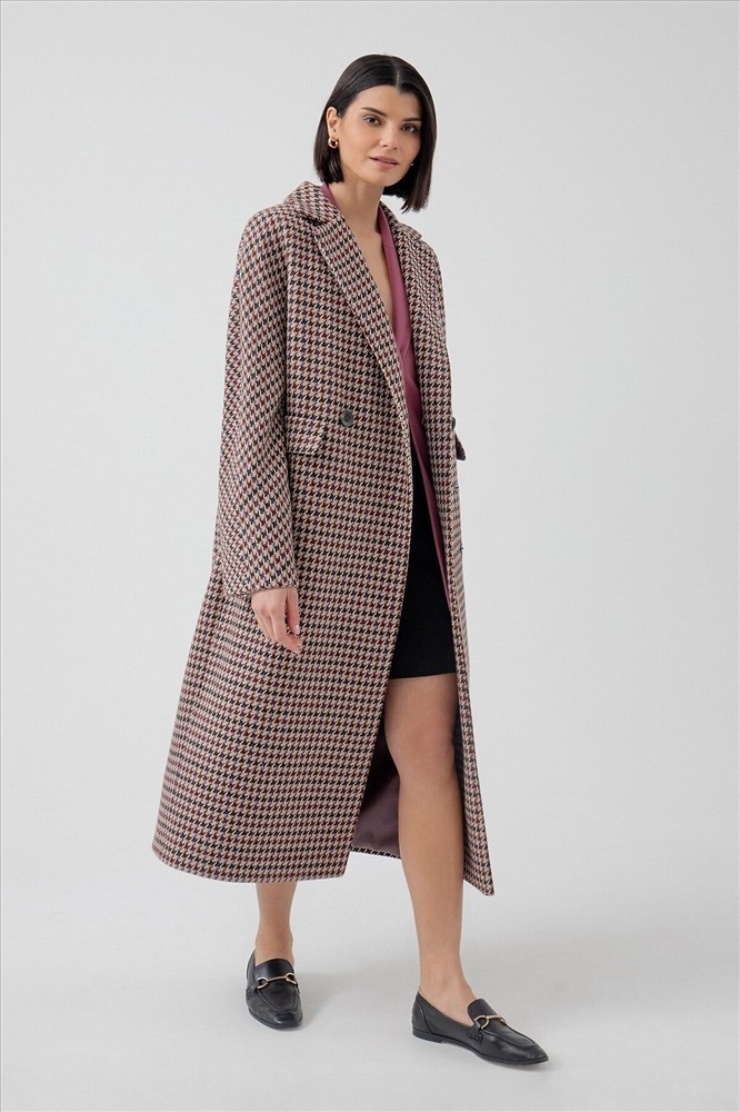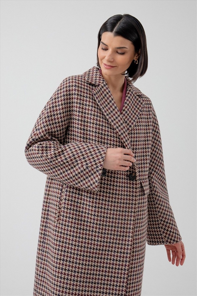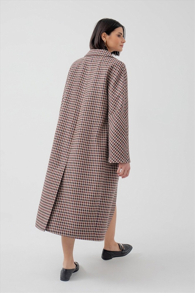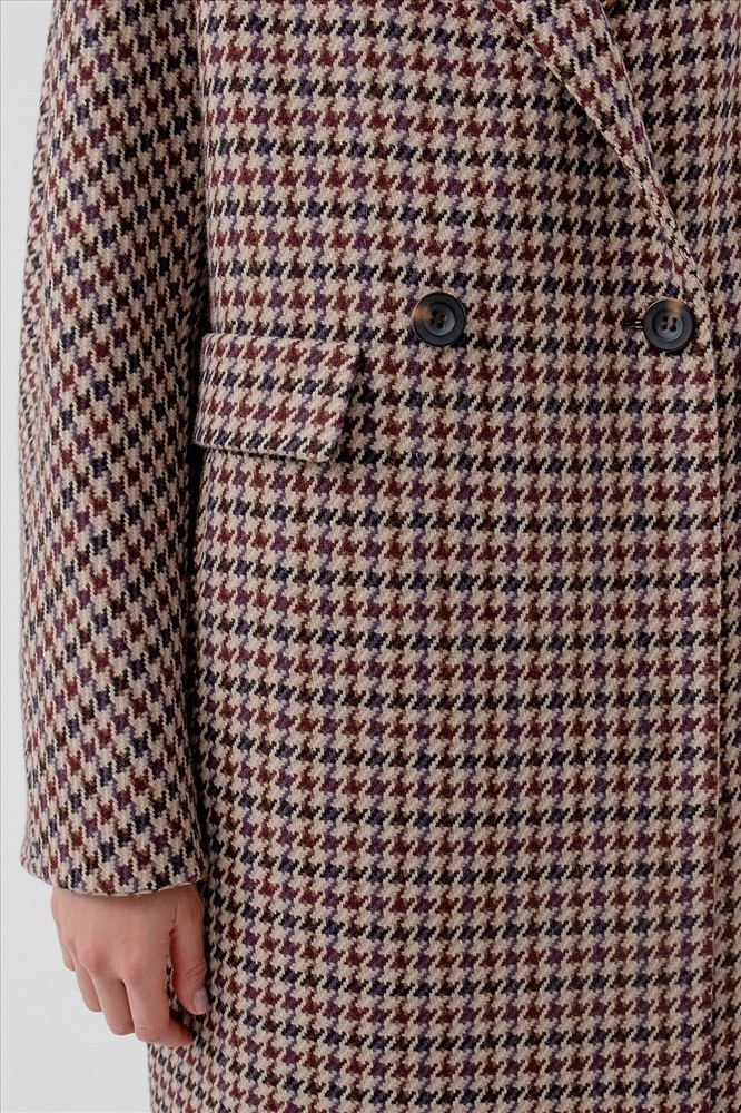 ID товара: 888848 Состав: Основная ткань- Шерсть 50%, Полиэстер 50%; Подкладка- Полиэстер 55%, Вискоза 45% Сезон: Демисезон Длина: Удлиненная Фасон: Кокон Рукав: длинные Вырез горловины: V-образный, отложной воротник Рисунок: Гусиная лапка Тип карманов: Прорезные Основная ткань: Шерсть Стиль: классический Страна бренда: Россия Страна производства: Россия Двубортное пальто силуэта "удлиненный кокон" выполнено из премиальной шерстяной ткани в благородный бежево-чернильный принт "dogtooth". Стильный и комфортный рукав-кимоно позволит носить многослойные образы и при этом не стесняет движений. Рукав имеет широкую подгибку низа, благодаря чему можно подвернуть рукав на необходимую высоту. Пальто застегивается на две крупные пуговицы под натуральный рог. Длина пальто миди. Произведено с использованием мембраны RaftPro, которая защитит даже от сильного ветра. Произведено в Санкт-Петербурге. Комментарии к товару