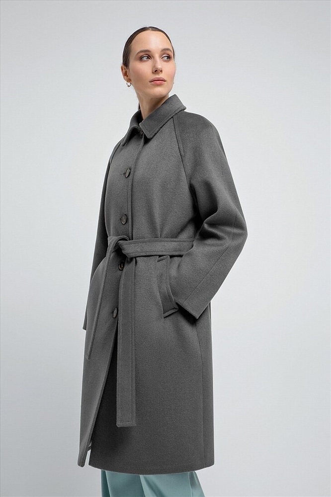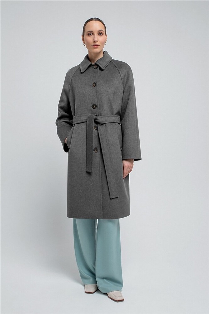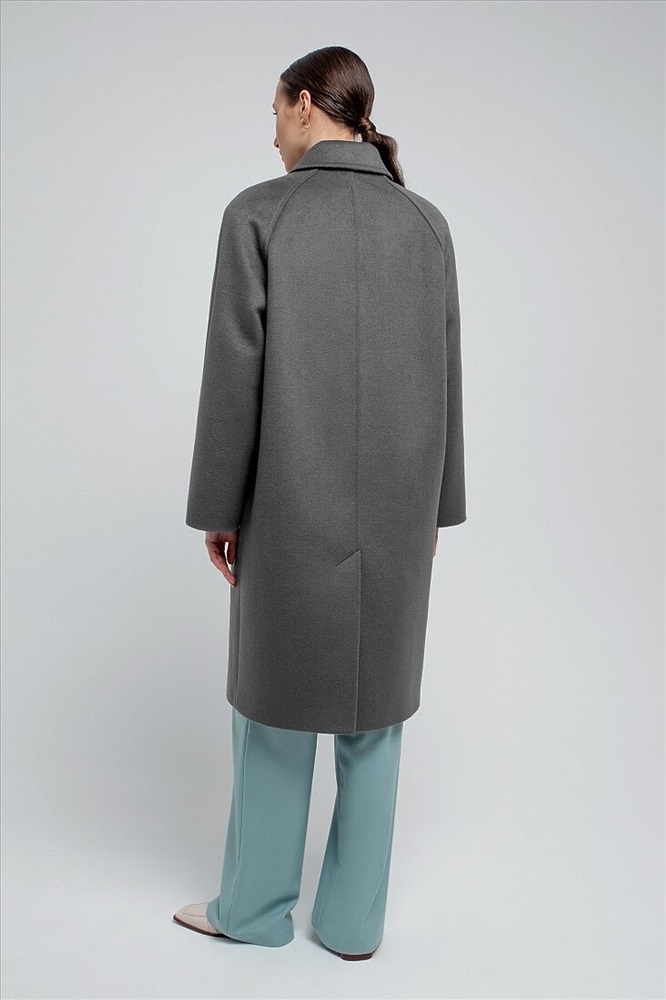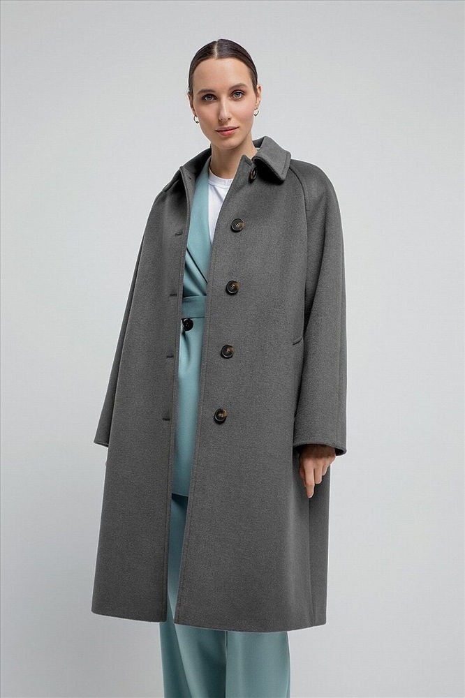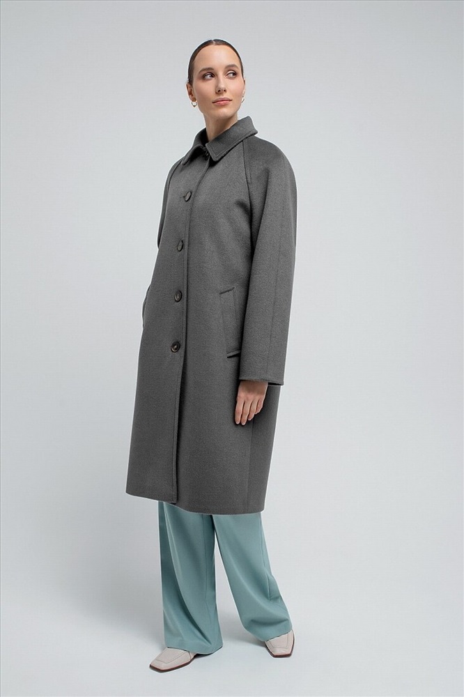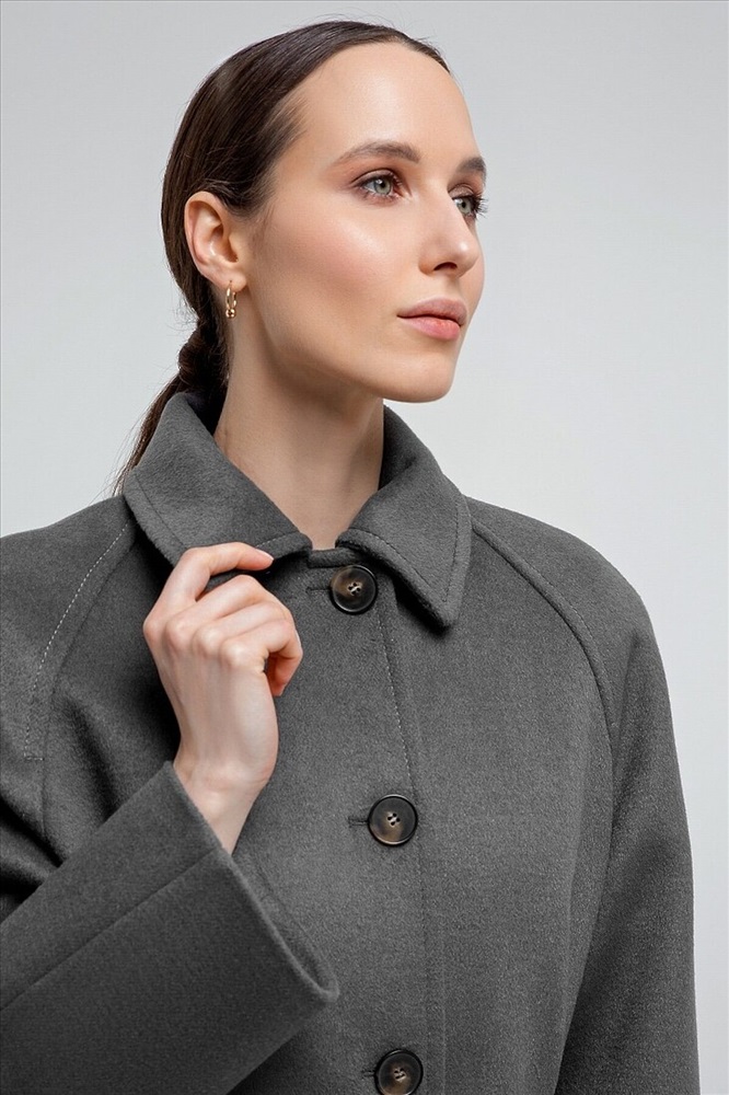 Пальто прямого силуэта из шерстяной ткани благородного серого цвета, длина чуть ниже колена. Классический отложной воротник, что позволяет носить пальто без дополнительных теплых аксессуаров, при этом сохраняя тепло. Комфортный рукав-реглан, застежка на ряд крупных контрастных пуговиц, два глубоких и функциональных кармана с листочками. Пальто выполнено из премиальной ткани с высоким содержанием шерсти и с использованием мембраны RaftPro, которая защитит даже от сильного ветра. Произведено в Санкт-Петербурге.