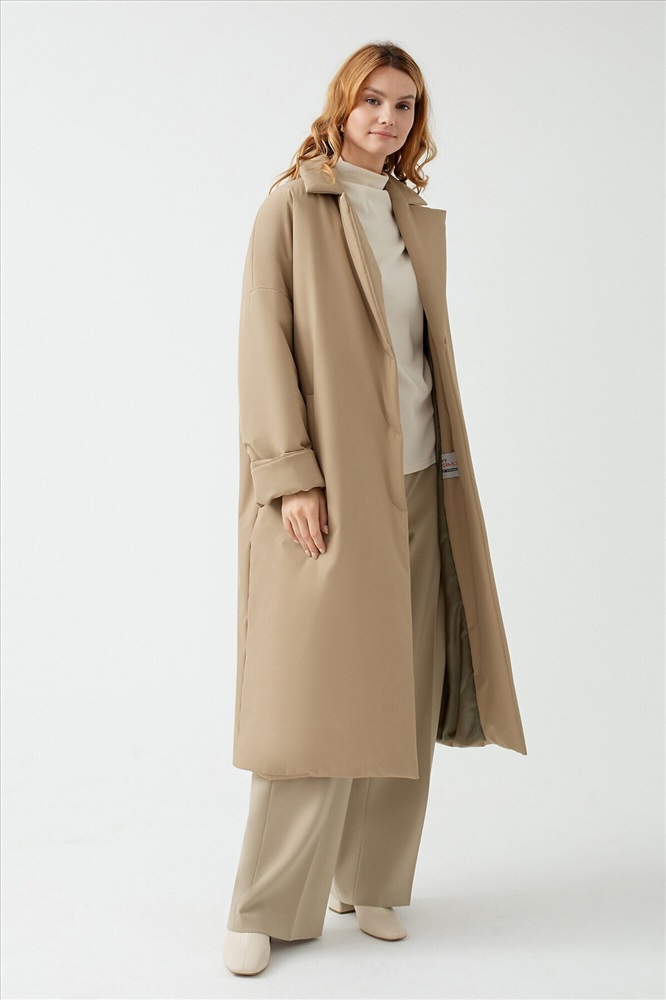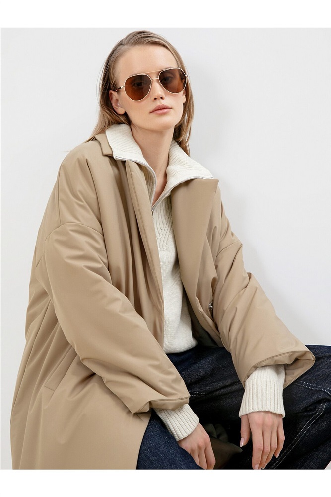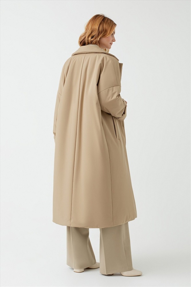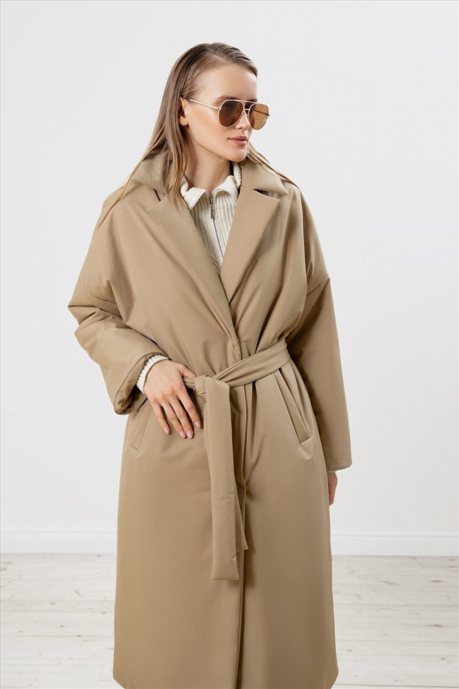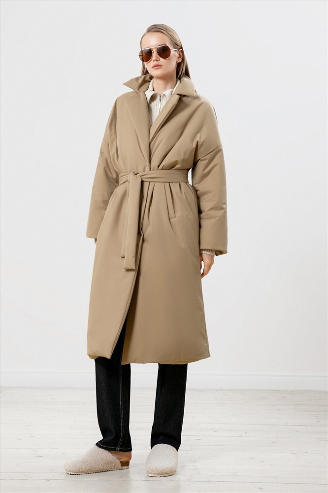 Пальто прямого силуэта из плащевой ткани. Классический английский воротник, комбинированый рукав полной длины, рубашечный спереди и реглан сзади, переходящий в кокетку спинки. Рукав имеет широкую подгибку низа для возмомжности отворота. Глубокие и комфортные карманы-листочки. В качестве декора присутствуют отделочные строчки. Застежка на надежные пришивные кнопки. Длина пальто ниже колена, а в комплекте пояс из основной ткани, что расширяет возможности для комбинировния образов. Пальто выполнено из плащевой ткани бежевого цвета. Произведено с помощью высокотехнологичной мембраны, надежно защищающей от ветра и дождя. Пальто выполнено в технологии EW, температурный режим до -15, но не забывайте про индивидуальные ощущения. Произведено в Санкт-Петербурге.