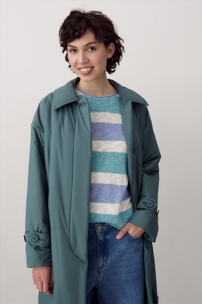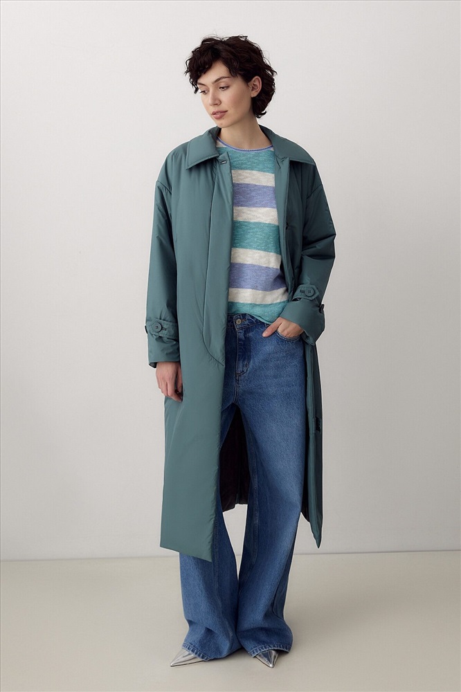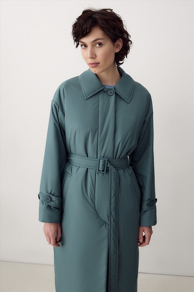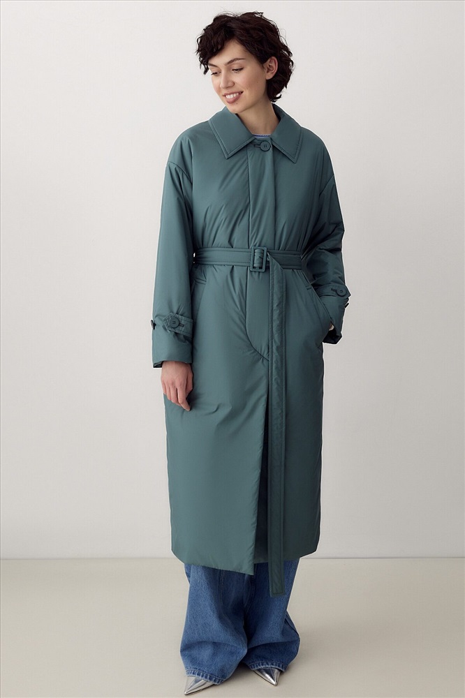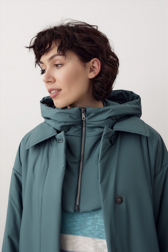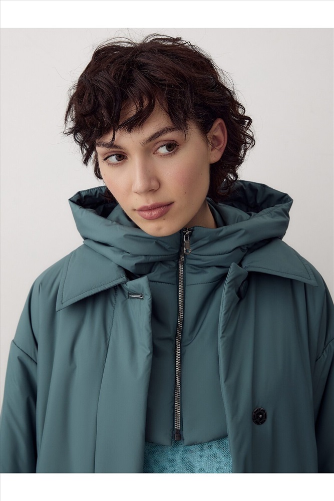 ID товара: 995515 Состав: Основная ткань- Полиэстер 100%; Полиэстер 55%, Вискоза 45% Сезон: Демисезон Длина: Удлиненная Фасон: Свободный крой Рукав: длинные Вид застежки: Кнопки Тип карманов: Прорезные Декоративные элементы: С капюшоном Утеплитель: с утеплителем, DuPont Sorona Стиль: кэжуал Страна бренда: Россия Страна производства: Россия Утепленное пальто прямого силуэта из плащевой ткани в модном темно-изумрудном цвете. Пальто имеет длину ниже колена, аккуратный отложной воротник, застежку на пришивные кнопки и пуговицы. По низу рукава декоративные паты с застежкой на пуговицы. На спинке отлетная кокетка также фиксируется на пуговицу. В среднем шве спинки находится высокая шлица. В комплекте к пальто предлагается пояс из основной ткани с пряжкой в цвет пуговиц, а также съемный капюшон с манишкой, который с легкостью отстегивается и имет возможность как легкой смены образа, так и комбинированию его с другими нашим пальто. Выполнено из качественной плащевой ткани с мембранным покрытием, которая надежно защитит от ветра и дождя, и современного легкого утеплителя. Произведено в Санкт-Петербурге. Комментарии к товару