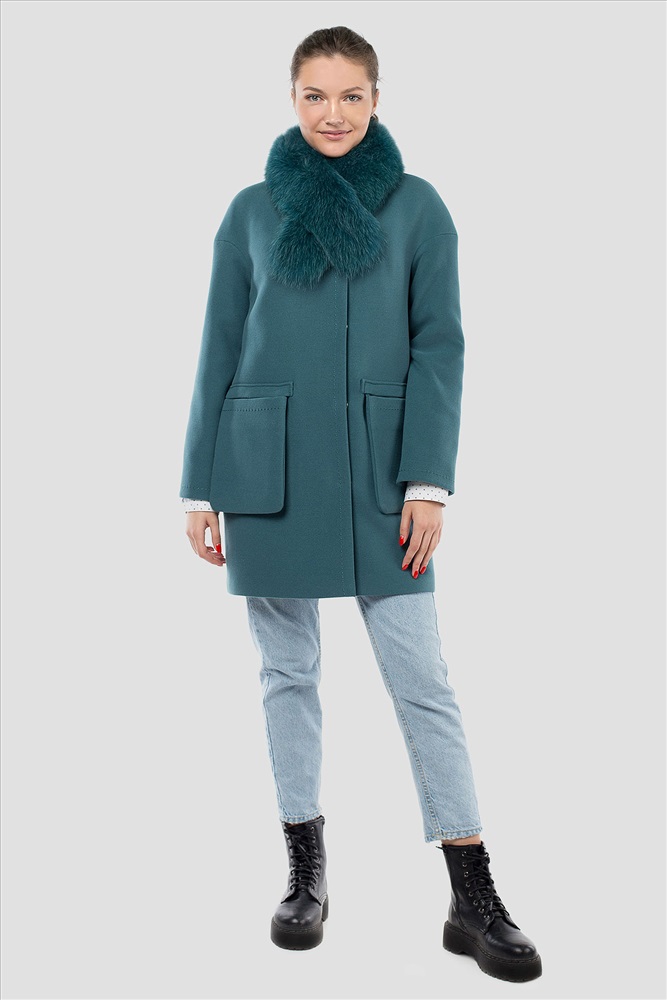 Застегивается на кнопки.Карманы отстегиваются.Мех натуральный (песец).