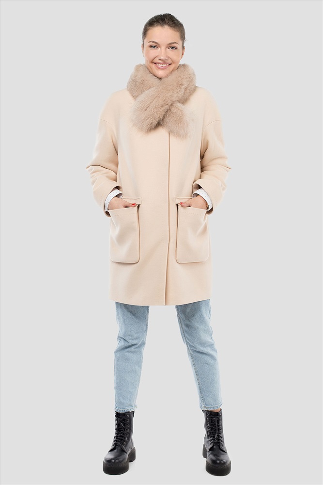 Застегивается на кнопки.Карманы отстегиваются.Мех натуральный (песец).