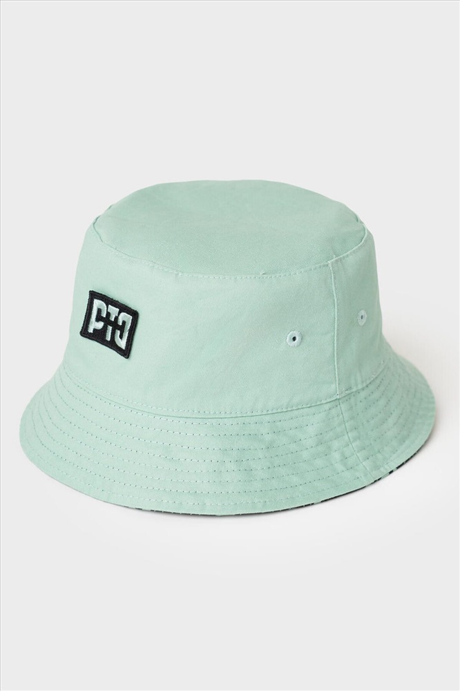 ID товара: 1240666 Состав: 100% хлопок Сезон: Весна/Лето Cтильная двухсторонняя детская панама для мальчика. Одна сторона выполнена в однотонном мятном цвете с контрастным логотипом, другая — с ярким чёрно-мятным принтом. Комментарии к товару