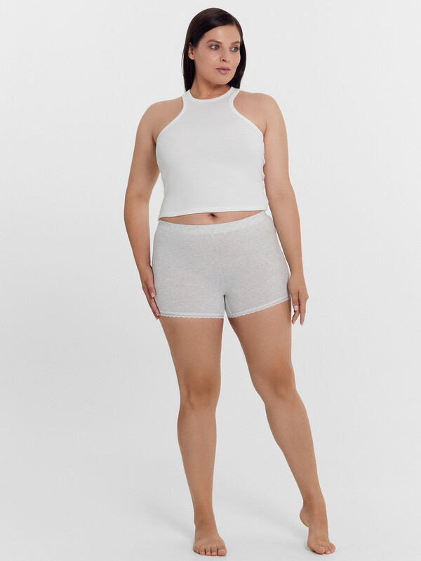 Укороченные женские панталоны из нежного и гипоаллергенного хлопкового полотна. Длина – как у шортиков мини, линия талии высокая. Гарантируют особый комфорт, сглаживают проблемные места, делают силуэт более элегантным. Нижние срезы декорированы ажурным кружевом. Созданы для дам с пышными формами!