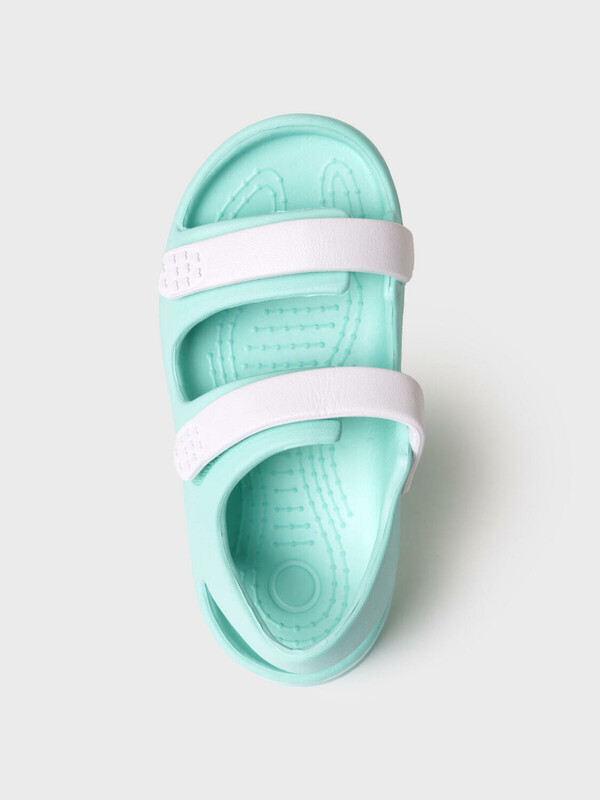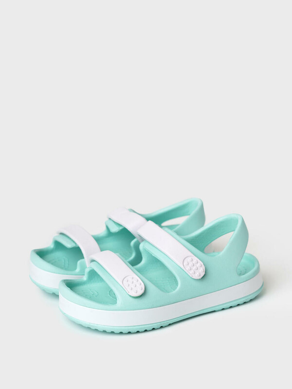 Пляжные сандалии из облегченного ЭВА с регулируемой союзкой двумя ремешками. Фиксация пятки ремешком. Материал хорошо моется. Удобная колодка.