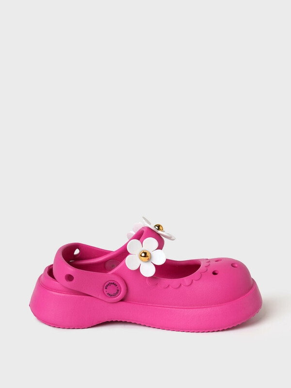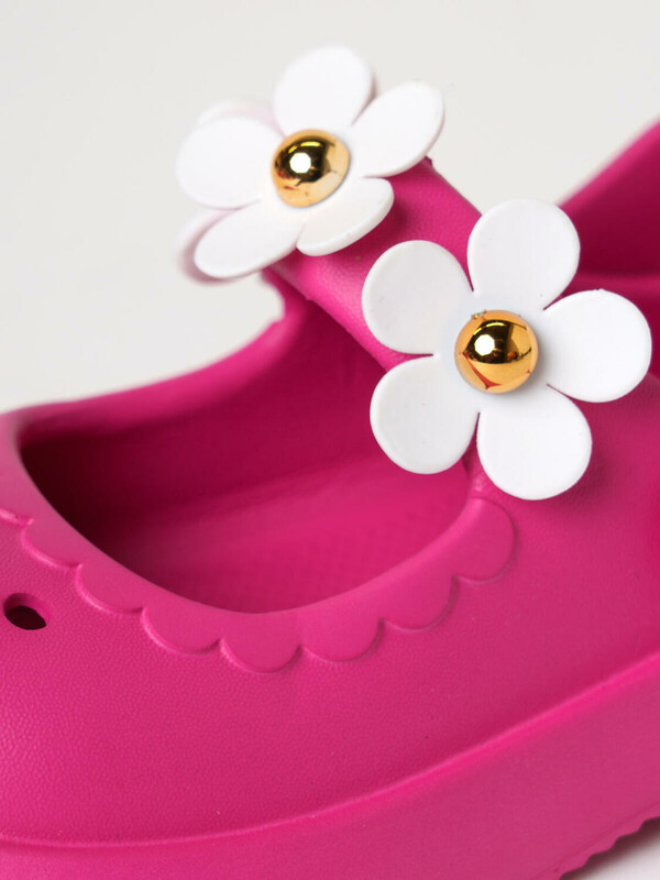 Сабо из облегченного и прочного ЭВА. Материал хорошо моется. Форма модели учитывает эргономику стопы. Модель имеет перекидной ремешок для лучшего удержания обуви на стопе. Съемные цветы можно располагать на модели в любом порядке.