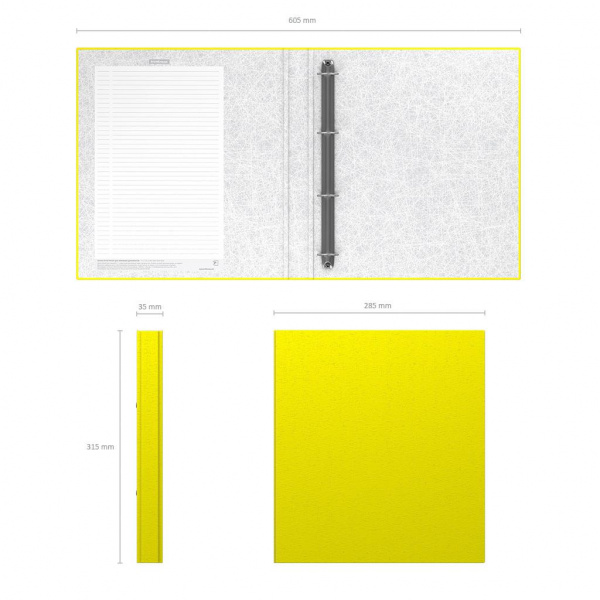 Папка - регистратор формата А4 снабжена механизмом на O-кольцах диаметром 25 мм. Изготовлена из картона толщиной 1,75 мм, покрытого бумагой со структурным тиснением и водоотталкивающей поверхностью. Корешок шириной 35 мм. Вместительность до 250 листов бумаги плотности 80 г/м?. На форзаце есть шаблон для оглавления. Удобна для проведения презентаций, представления документации на семинарах. Коллекция представлена в ярких неоновых цветах.