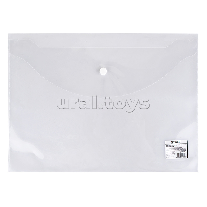 Код: 159894 Страна производитель: Россия Размеры упаковки: 33 x 24 x 1 см Количество в коробке: 25 • Папка для хранения документов. • Формат: 34х24 см. • Застёгивается на кнопку. • Материал: пластик. • Соответствует требованиям безопасности продукции. • Для детей от 6 лет. Комментарии к товару
