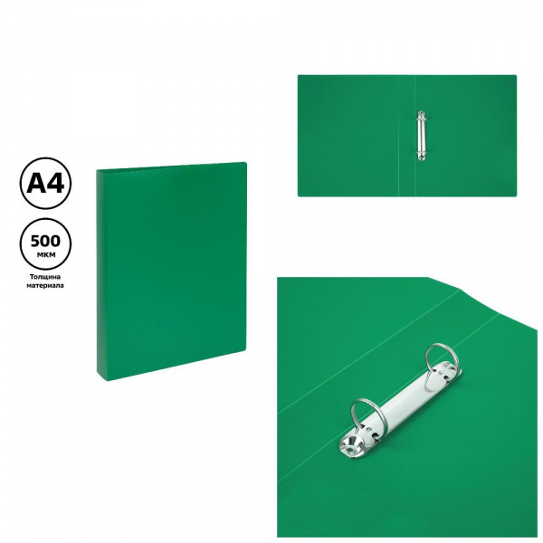Наименование: Папка пластиковая 2 кольца 40мм ММ-32178 зеленая 500мкм Стамм