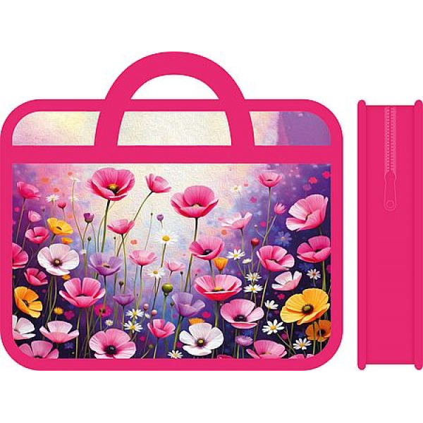 Папка пластиковая А4 на молнии с ручками 33х26х7,5 см ПМ-А4-25 " ЦВЕТЫ 2026" Пчелка