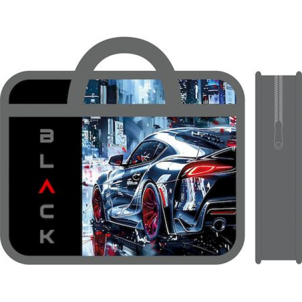 Папка пластиковая А4 на молнии с ручками 33х26х7,5 см ПМ-А4-25 "ЧЕРНАЯ МАШИНА/BLACK CAR" Пчелка