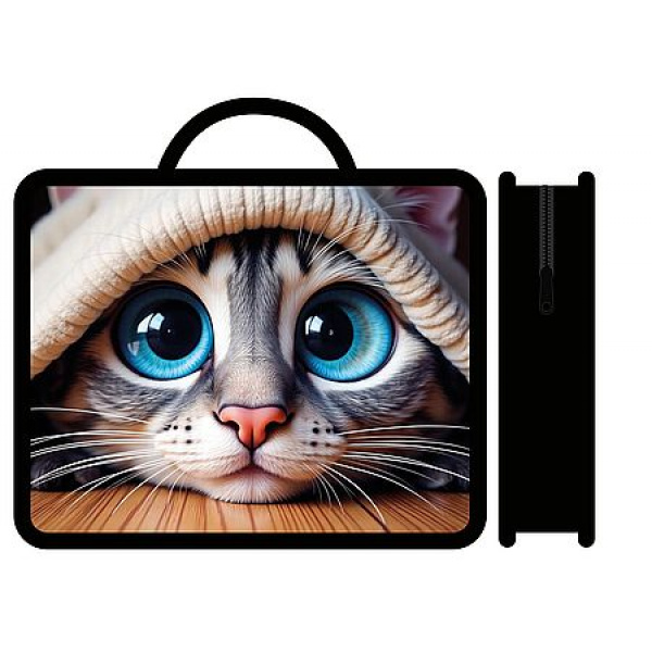Папка пластиковая А4 на молнии с ручками 33х26х7,5 см ПМ-А4-26 "ГОЛУБОГЛАЗЫЙ КОТ 2026" Пчелка