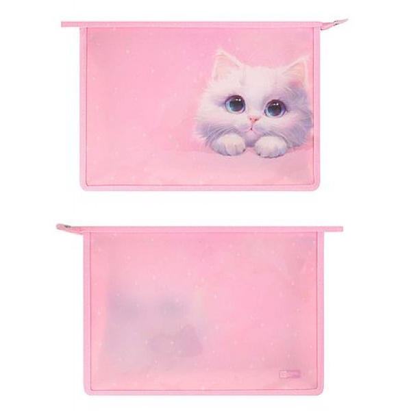 Наименование: Папка пластиковая для тетрадей А4 на молнии сверху, с расширением "БЕЛЫЙ КОТ" 72353 Феникс