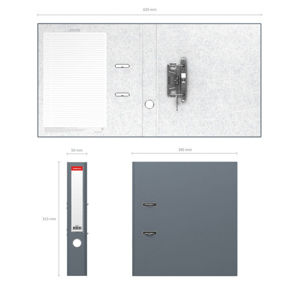 Папка - регистратор формата А4 снабжена стальным арочным механизмом с никелевым покрытием. Изготовлена из картона толщиной 1.75 мм, покрытого специальным износостойким материалом с фактурным тиснением. Корешок папки шириной 50 мм оснащен прозрачным пластиковым карманом со сменной этикеткой для маркировки. Для удобства использования на корешке имеется металлическое кольцо для захвата. Металлические фиксаторы удерживают папку в закрытом виде даже при максимальном наполнении. Вместительность до 350 листов бумаги плотности 80 г/м?. На форзаце есть шаблон для оглавления.
