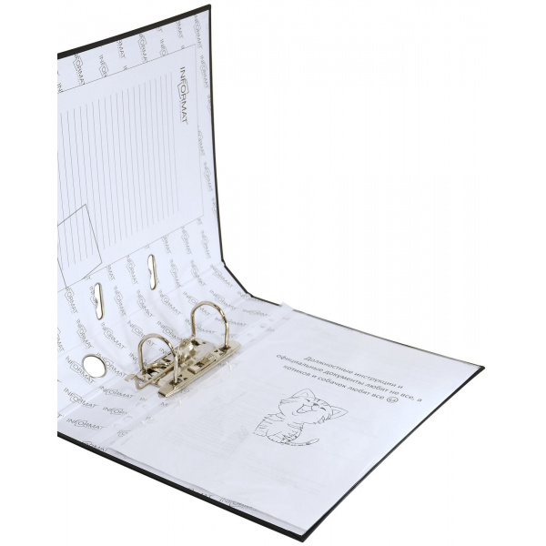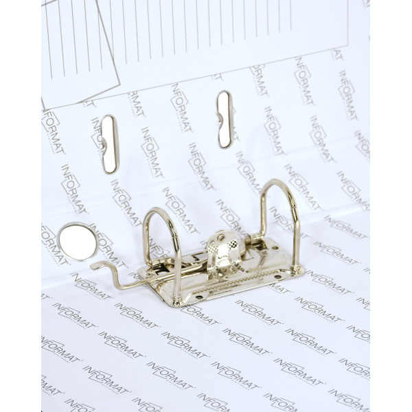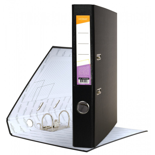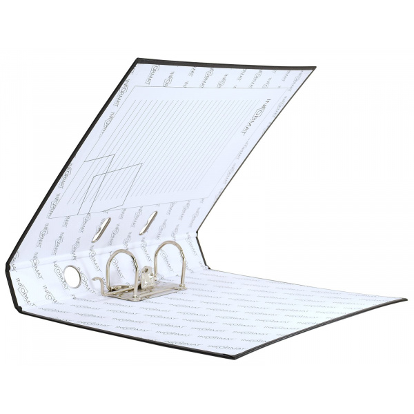 Папка-регистратор формата A4 изготовлена из качественного картона, покрытого с одной стороны покрытием PVC и внутренней цветной запечаткой в цвет внешнего покрытия. Металлический арочный механизм съемный. На корешке папки имеется карман со сменной этикеткой для маркировки и кольцо для удобства захвата. Прорези на крышке папки удерживают ее, даже при большом количестве документов.