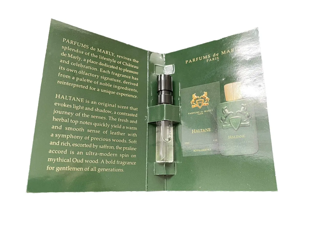Parfums de Marly Haltane — элитная парфюмерная вода с древесно-фужерным ароматом для мужчин, представленная в 2021 году французским парфюмерным брендом Parfums de Marly. Солидный и статусный мужской аромат Haltane излучает благородство, спокойную уверенность в себе, основательность и безупречный вкус своего обладателя. Аромат открывается мягкими пряно-бальзамическими специевыми акцентами мускатного шалфея, цветочно-зелеными оттенками душистой лаванды и свежими цитрусовыми аккордами бергамота, которые сплетаются в «сердце» парфюмерной композиции с пряными нотами солнечного драгоценного шафрана и сладкими гурманскими нюансами популярного пирожного пралине. Глубокий стойкий насыщенный шлейф аромата Parfums de Marly Haltane характерен древесными оттенками смолистого сливочно-хвойного кедра и дымными нотами эфирного масла драгоценного редчайшего уда. Комментарии к товару
