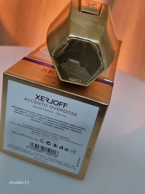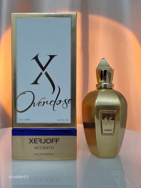 Accento Overdose — нишевая парфюмерная вода с древесно-цветочным ароматом для женщин и мужчин, созданная в 2019 году знаменитым итальянским брендом Xerjoff. Магический и притягательный концептуальный парфюм принадлежит к коллекции, посвященной космосу и небесным телам, что особенно подчеркнуто эксклюзивными флаконами, с вложенными в них отдельными пластинами с фрагментами метеорита.