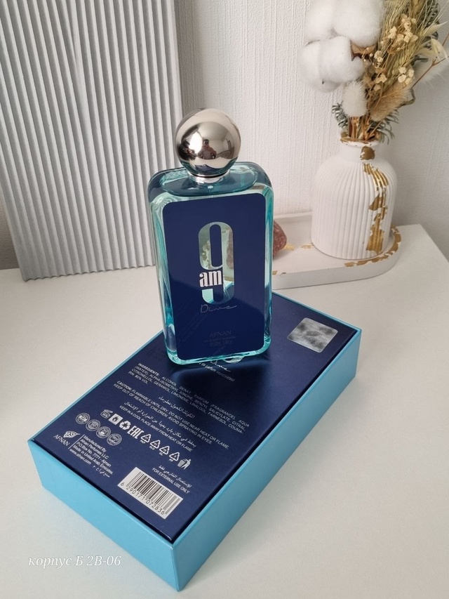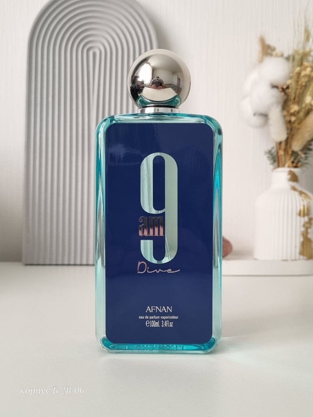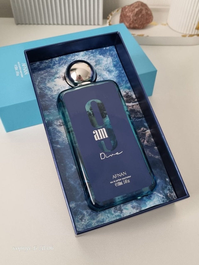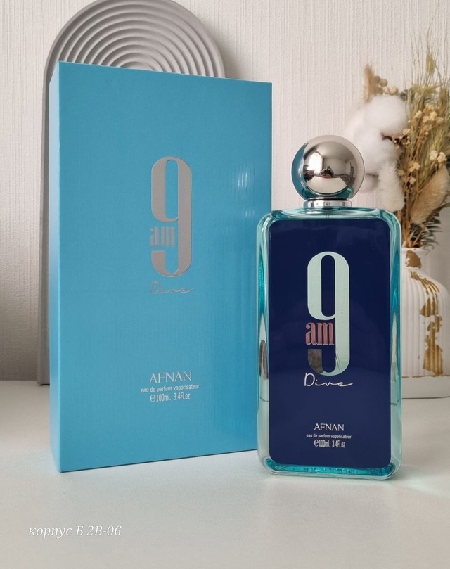 Afnan 9 Am Dive — интересный по звучанию восточно-фруктовый унисекс-парфюм с мягкими, бархатистыми древесными оттенками. Парфюм выпущен арабским парфюмерным брендом Afnan в 2022 году и одет в простой флакон с этикеткой.