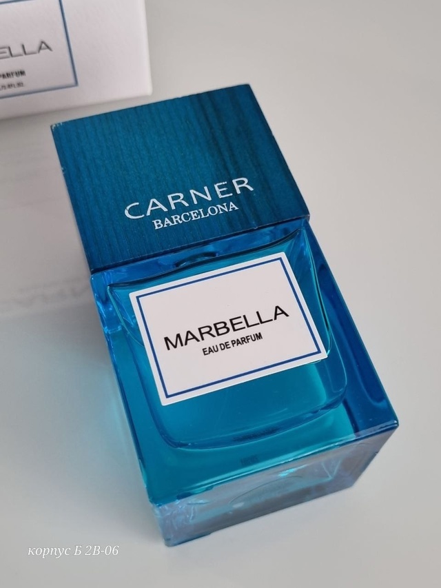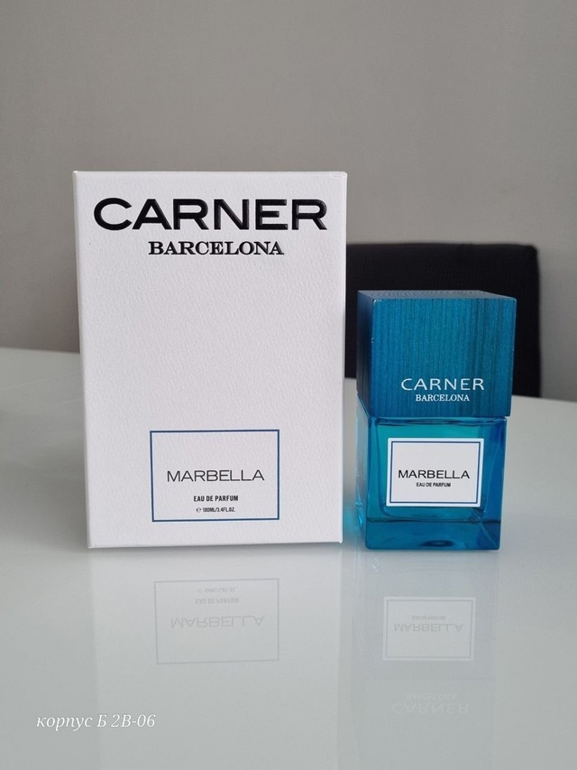 Marbella — нишевая парфюмерная вода с пряно-цветочным ароматом для женщин и мужчин, представленная в 2020 году дизайнерским брендом Carner из Испании. Шикарные, невероятно элегантные духи представляют собой яркое ольфакторное отображение европейского морского курортного гламура — роскошных сверкающих белоснежных яхт, великолепно стильно и модно одетых женщин и мужчин, пропитанного непревзойденными волнующими ароматами воздуха.