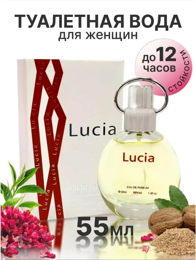 Парфюмерная ностальгия Духи Lucia (Лусия) Всем нам известная туалетная вода ЛУСИЯ. Парфюм по праву можно назвать легендарным и сейчас занимают достойное место в линейке ароматов. Мы выпустили аналог духи Lucia премиального качества. Лицензионная парфюмерия обладает всеми характеристиками оригинального парфюма Мы создали достойную копию Lucia, но 3 раза дешевле. Состав и стойкость от и до, начиная с парфюмерной композиции и заканчивая дизайном флакона. Мы реализуем действительно качественную по привлекательной цене. Создатель Lucia - Сирил Роллан -специализируется на лабораторных разработках для бренда Mапе и занимается созданием новых каптивных материалов. Тем не менее, он подписал несколько коммерческих заказов - как от массовых, так и от нишевых брендов, в том числе с авангардной итальянской маркой Blood Concept. Распыли немного туалетной воды в воздухе перед собой и шагни в ароматное облако. Наноси туалетную воду в течение дня, чтобы освежить аромат и повысить настроение. Выбирай свой аромат в зависимости от сезона: легкий аромат для лета и более тяжелый для холодного времени года.
