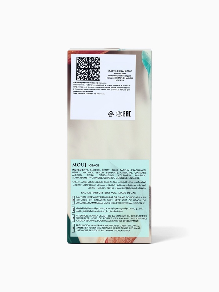 Габариты: 5 x 5 x 11 Страна: ОАЭ В боксе: 24 шт Состав: См. на упаковке Материалы: см. на упаковке Фасовка: по 1 шт Индивидуальная упаковка: Без упаковки Сертификат: ЕАС Объём, мл: 35 Группа ароматов: Древесные Семейство аромата: Древесные Верхние ноты: Розовый перец, Корица Средние ноты: Роза, Мёд Базовые ноты: Дуб, Кедр, Ветивер Вид дозатора: Распылитель Milestone MOUJ ICEAGE — это выразительный и многогранный женский аромат, в котором холодная свежесть переплетается с тёплой пряностью и благородными древесными аккордами. Эта композиция создана для женщин с сильным характером, утончённым вкусом и любовью к сложным, нишевым ароматам. Аромат открывается ярким и динамичным сочетанием корицы и розового перца. Пряные верхние ноты создают ощущение энергии и глубины, придавая композиции характер и лёгкую остроту, которая сразу же привлекает внимание. В сердце аромата раскрывается чувственное и контрастное сочетание мёда и розы. Тёплая, тягучая сладость мёда гармонично переплетается с бархатистой цветочной нотой розы, наполняя аромат женственностью, мягкостью и утончённой элегантностью. Базовые ноты формируют стойкий и благородный шлейф. Дуб придаёт композиции характерную древесную глубину и сухость, атласский кедр добавляет теплоты и благородства, а ветивер завершает аромат дымно-землистыми оттенками, делая звучание насыщенным и запоминающимся. Milestone MOUJ ICEAGE — это аромат для тех моментов, когда хочется подчеркнуть внутреннюю силу, индивидуальность и изысканный вкус. Он прекрасно подойдёт для вечернего времени, особых случаев и прохладного сезона, красиво раскрываясь на коже и оставляя элегантный, стойкий шлейф. Флакон объёмом 35 мл удобен для повседневного использования и путешествий, позволяя всегда иметь при себе аромат, который подчеркивает характер и утонченность своей обладательницы. Комментарии к товару