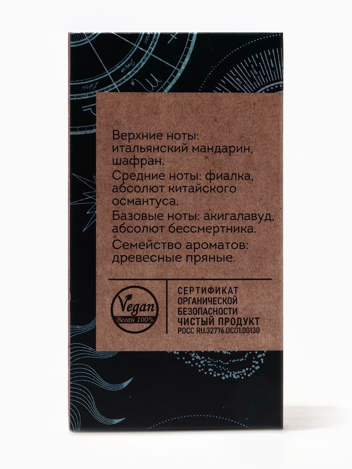 Габариты: 10 x 5,5 x 5,5 Страна: Россия В боксе: 12 шт Состав: См. на упаковке Материалы: см. на упаковке Фасовка: по 1 шт Индивидуальная упаковка: Без упаковки Сертификат: ЕАС Для кого: Для женщины Объём, мл: 50 Группа ароматов: Древесные, Пряные Верхние ноты: Шафран, Мандарин Средние ноты: Османтус, Фиалка Базовые ноты: Бессмертник Вид дозатора: Распылитель Парфюмерная вода женская Vegan Love Studio Galileo, 50 мл — это загадочный, глубокий и притягательный аромат для женщин, которые ценят уникальность, элегантность и индивидуальность. Вдохновлённая Ganymede (Marc-Antoine Barrois), она сочетает свежие фруктовые акценты с лёгкими цветочными нюансами и древесно-мускусной базой, создавая стойкий, изысканный и чарующий шлейф. Композиция открывается яркими и свежими нотами бергамота, мандарина и зелёного яблока, даря ощущение лёгкости, энергии и внутренней гармонии. В сердце аромата раскрываются нежные оттенки ириса, фиалки и белых цветов, придавая аромату утончённость, женственность и мягкую элегантность. Базовые ноты белого мускуса, кедра и лёгкой амбры создают бархатистый, стойкий и глубокий шлейф, который остаётся на коже на протяжении всего дня. Парфюмерная вода Vegan Love Studio Galileo подчёркивает природное обаяние и магнетизм, создавая вокруг вас ощущение притяжения и уверенности. Формула аромата полностью веганская, не содержит ингредиентов животного происхождения и идеально подходит для современной осознанной женщины. Для максимального раскрытия наносите аромат на точки пульса — запястья, шею, область за ушами — так он проявит себя полностью, создавая персональный, глубокий и чарующий шлейф. Преимущества Vegan Love Studio Galileo, 50 мл: