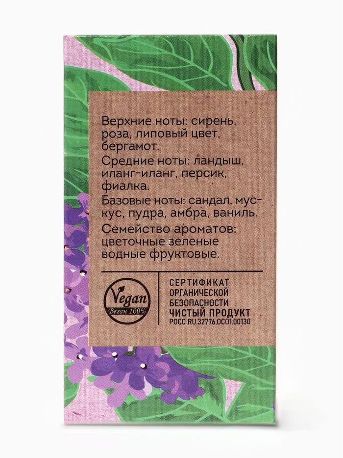 Габариты: 9,5 x 5 x 5 Страна: Россия В боксе: 12 шт Состав: См. на упаковке Материалы: см. на упаковке Фасовка: по 1 шт Индивидуальная упаковка: Без упаковки Сертификат: ЕАС Для кого: Для женщины Объём, мл: 50 Группа ароматов: Зелёный, Цветочные Верхние ноты: Бергамот, Сирень, Роза, Липовый цвет Средние ноты: Ландыш, Персик, Фиалка, Иланг-иланг Базовые ноты: Пудровые аккорды, Сандал/Сантал, Амбра, Мускус, Ваниль Вид дозатора: Распылитель Vegan Love Studio Lilac, 50 мл Окунитесь в утонченность и свежесть с Vegan Love Studio Lilac — идеальным средством для женщины, которая ценит лёгкость, элегантность и чувственность. Каждое нанесение раскрывает многогранную композицию, которая подчёркивает индивидуальность и оставляет лёгкий, притягательный шлейф. Ноты композиции:
