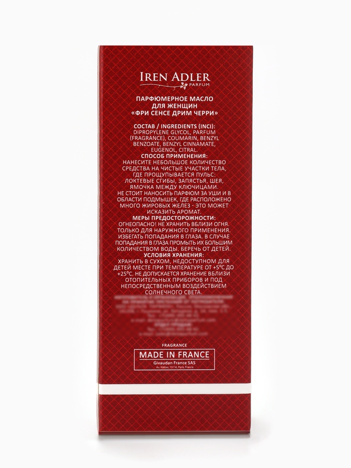 Габариты: 4 x 3 x 9 Страна: Россия В боксе: 27 шт Состав: См. на упаковке Материалы: см. на упаковке Фасовка: по 1 шт Индивидуальная упаковка: Без упаковки Сертификат: ЕАС Для кого: Для женщины Объём, мл: 8 Группа ароматов: Цветочные, Восточные Верхние ноты: Ликёр, Миндаль, Вишня Средние ноты: Жасмин, Роза, Вишня, Слива Базовые ноты: Бобы тонка, Ваниль, Корица, Бензоин Вид дозатора: Шариковый ролик Парфюмерное масло Free Sense Dream Cherry — это сладкий, соблазнительный и насыщенный аромат для женщин, которые любят проявлять чувственность и индивидуальность. По мотивам Lost Cherry (Tom Ford), масло сочетает сочные фруктовые акценты с тёплыми пряными и древесными нотами, создавая стойкий, бархатистый и притягательный шлейф. Аромат раскрывается верхними нотами спелой вишни и черной смородины, даря яркость, сладость и игривость. В сердце композиции звучат миндаль и цветочные оттенки, добавляя утончённость и женственность. Базовые ноты ванили, сандала, амбры и мускуса закрепляют аромат, создавая тёплый, глубокий и стойкий шлейф, который остаётся на коже надолго. Концентрированная формула масла обеспечивает долгую стойкость и постепенное раскрытие аромата. Наносите масло на точки пульса — запястья, шею, за ушами — чтобы аромат раскрылся индивидуально, создавая персональный и чарующий шлейф. Преимущества Free Sense Dream Cherry: