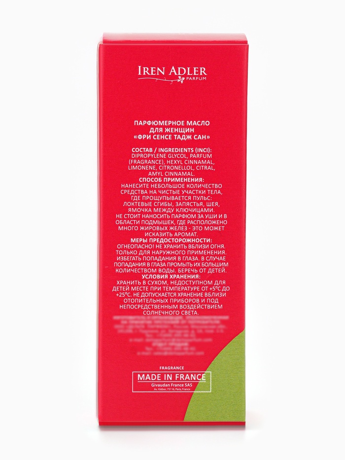 Концентрированная формула масла обеспечивает длительное раскрытие аромата. Наносите масло на точки пульса — запястья, шею, за ушами — чтобы аромат раскрывался индивидуально, создавая персональный и чарующий шлейф.