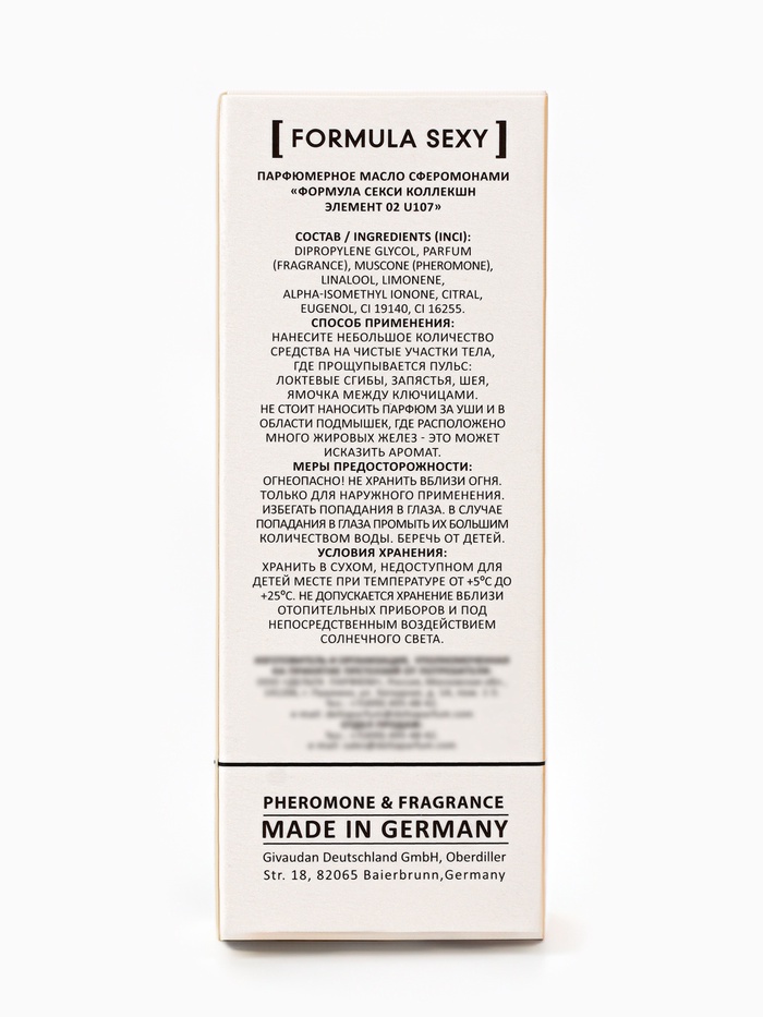 Габариты: 4 x 3 x 9 Страна: Россия В боксе: 27 шт Состав: См. на упаковке Материалы: см. на упаковке Фасовка: по 1 шт Индивидуальная упаковка: Без упаковки Сертификат: ЕАС Для кого: Для женщины Объём, мл: 8 Группа ароматов: Цветочные, Восточные Базовые ноты: Жасмин, Ирис, Iso E Super, Амброксан Вид дозатора: Шариковый ролик Formula Sexy Collection Element 02 U107 — это парфюмерное масло, созданное для женщин, которые выбирают индивидуальность, чистоту и едва уловимую роскошь. Аромат вдохновлён культовой молекулярной композицией Escentric 02, основанной на ноте амброксана — современной, воздушной и одновременно тёплой. Масло раскрывается мягким, чистым звучанием, которое не забивает пространство, а словно сливается с кожей, создавая эффект естественного, притягательного аромата. Благодаря феромонам композиция приобретает лёгкую магнетичность, усиливая вашу привлекательность и обаяние. Текстура масла обеспечивает особую стойкость: аромат удерживается на коже многие часы, раскрываясь постепенно и создавая индивидуальный, неповторимый шлейф. Формат 8 мл удобен для ежедневного ношения в сумочке — идеальный спутник на работу, свидание или вечерний выход. Кому подойдёт