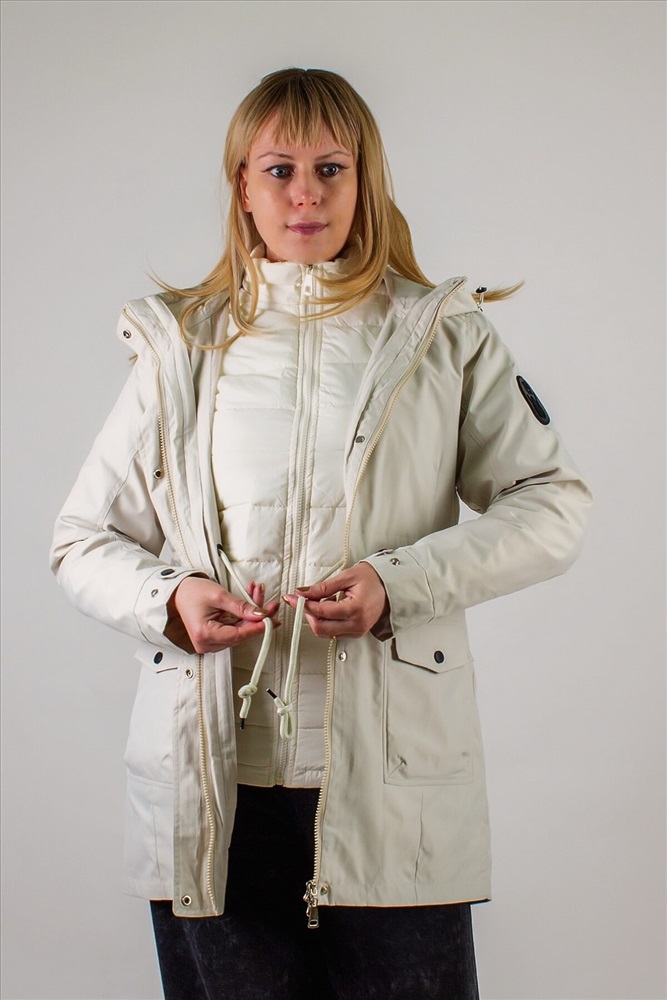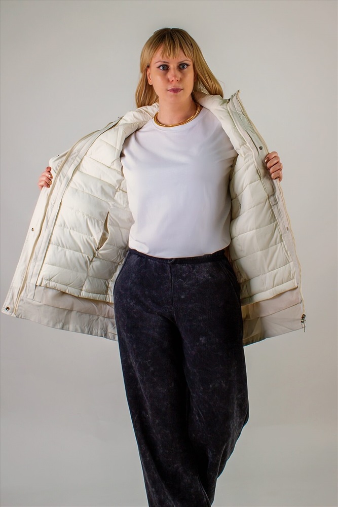 ID товара: 1206723 Состав: 100% Полиэстер Сезон: Демисезон Длина: Средняя Фасон: Прямой Рукав: Длинные Вид застежки: Молния Тип карманов: Накладные Декоративные элементы: С капюшоном Утеплитель: с утеплителем Стиль: повседневный Вид ткани: Наполнитель холлофайбер, курточная стеганая Страна бренда: Россия Страна производства: Россия Демисезонная парка 2в1, арт. 1086 синтез современного дизайна, продуманной функциональности и безупречного качества. Этот комплект состоит из двух независимых, но идеально сочетающихся элементов: внешней парки-плаща и стеганой куртки-подстежки. Благодаря возможности носить их вместе или по отдельности вы легко адаптируетесь к капризам погоды, сохраняя комфорт и актуальный стиль в прохладное лето, весенне-осенний сезон и мягкие зимние дни. Внешняя парка-плащ выполнена из прочного, ветро- и влагоотталкивающего материала с матовым эффектом. Вместительный капюшон оснащен фиксаторами, позволяющими подогнать его по форме головы и защитить от ветра. Воротник-стойка сохраняет тепло в области шеи и придаёт модели элегантный силуэт. Молния с двухсторонним бегунком закрывается декоративной планкой на клёпках, препятствуя продуванию. На поясе размещена скрытая кулиска со стягивающими завязками идеальное решение для подчёркивания талии. Регулируемые манжеты на двух кнопках и два вместительных накладных кармана на клапанах обеспечивают практичность в любых условиях. Стёганая куртка-подстёжка легко отстёгивается от плаща-парки с помощью молнии и может носиться как самостоятельная лёгкая куртка. Она выполнена из фактурного материала с тёплым утеплителем. Приталенный силуэт, рукава на эластичных манжетах и классический воротник-стойка надёжно защищают от прохлады, а длина до середины бедра добавляет универсальности. Имеет боковые карманы на молнии, что позволяет в безопасности сохранить влажные вещи. Благодаря универсальному дизайну и лаконичной цветовой палитре парка 2 в 1 арт. 1086 отлично сочетается с кроссовками, ботинками, шарфами и сумками. Это идеальный выбор для городских прогулок, путешествий и активного отдыха. Успейте купить! Параметры внутренней куртки 2 для размера 46-48: Длина изделия - 69см; Длина рукава - 63см; Объем груди - 96; Объем талии - 96; Объем бедер - 108см. Параметры внутренней куртки 2 для размера 48-50: Длина изделия - 71см; Длина рукава - 64см; Объем груди - 98; Объем талии - 98; Объем бедер - 110см. Комментарии к товару