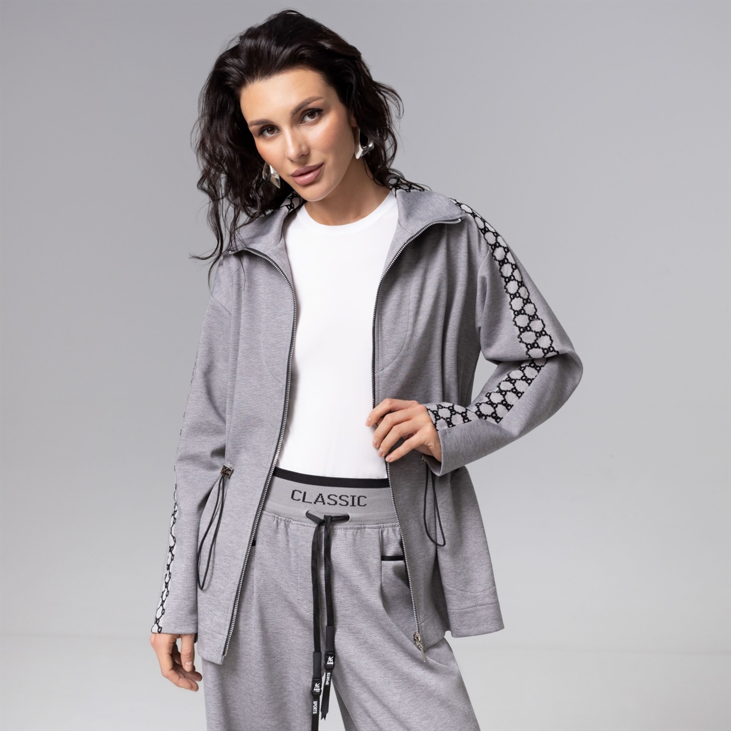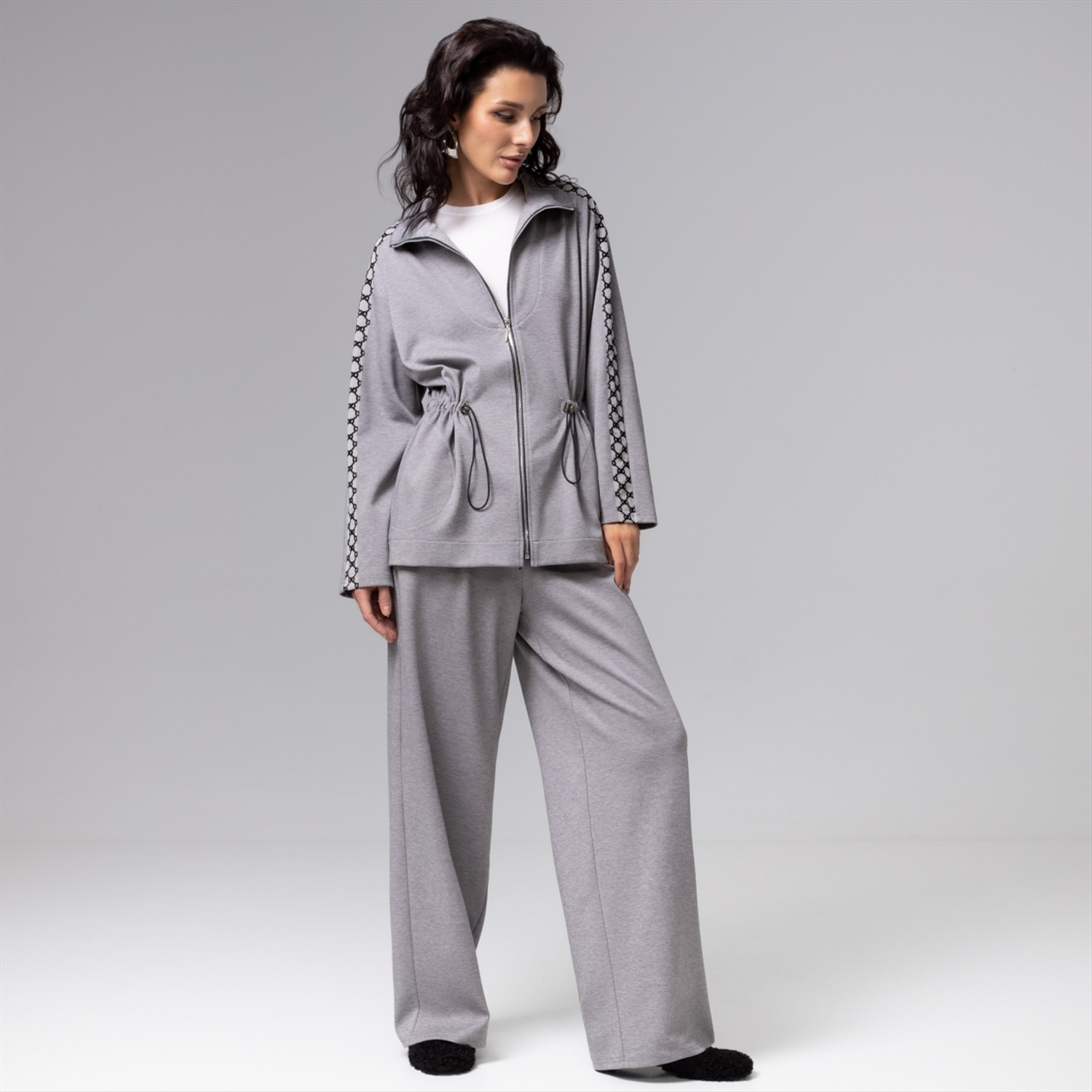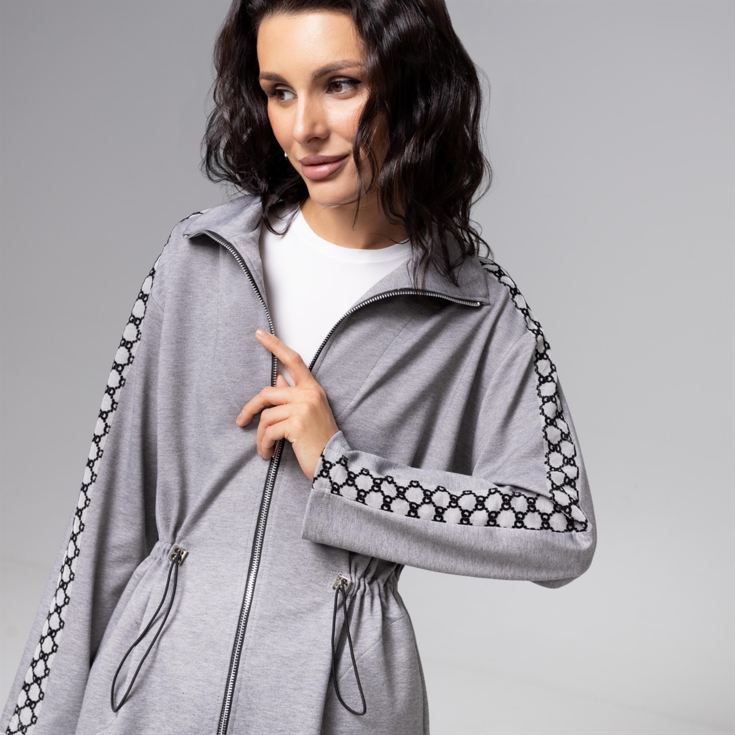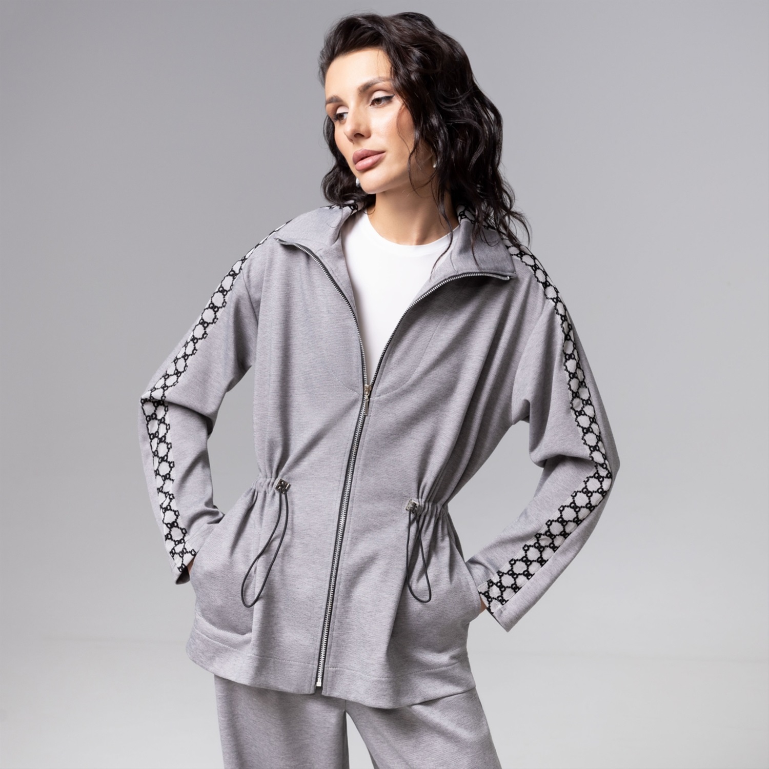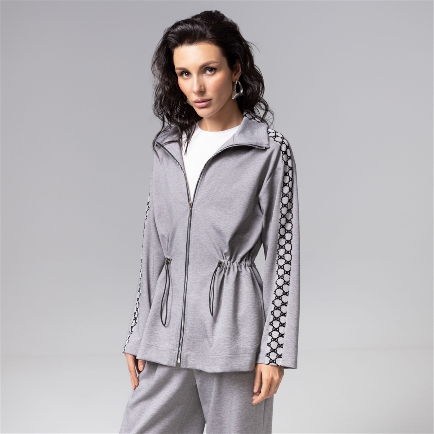 Парка ЧАРУТТИ стального серого оттенка воплощает современную элегантность. Классический крой оформлен деталями в виде вшитых лампасов, добавляющих образу строгую динамику. Функциональность модели подчеркивается наличием кулиски на талии с возможностью регулировать объем и создавать безупречную посадку, подчеркивающую силуэт. Продуманная конструкция и плотный эластичный трикотаж обеспечат комфорт и долговечность носки.