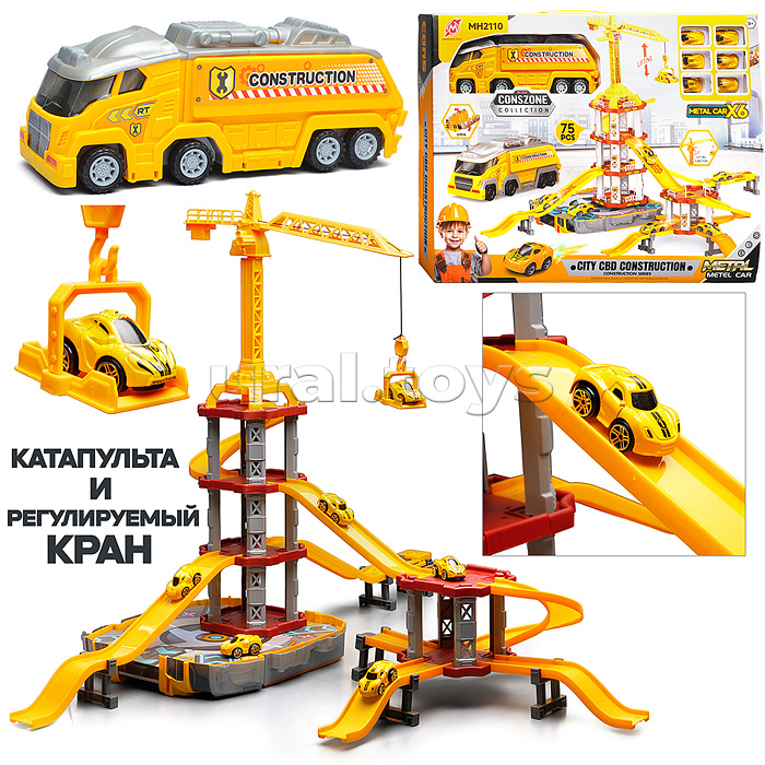 Код: 487106 Штрихкод: 6904111518154 Страна производитель: Китай Размеры упаковки: 9 x 41 x 52 см Количество в коробке: 18 • Размеры парковки: 61х67х51.5 см. • Кран с разматывающейся лебёдкой. • Платформа паркрвки трансформируется в грузовик (23.5х9х8.5 см.) • Материал: пластик. • В комплекте 6 машинок с металлическим кузовом. • Размеры машинок: 4.5х2.5х2 см. • Соответствует требованиям безопасности и стандартам качества продукции. • Для детей от 3-х лет. Комментарии к товару