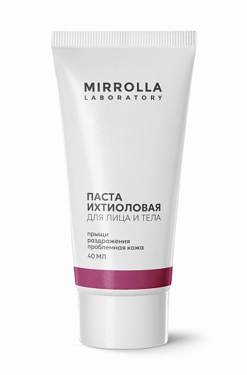 Ихтиол обладает успокаивающими, восстанавливающими и подсушивающими свойствами. Ихтиоловую пасту применяют для защиты кожных покровов от раздражений, для ухода за проблемной кожей в целях предотвращения появления прыщей и угрей. Особая формула ихтиоловой пасты «Мирролла»® в виде эмульсии, благодаря своим пленкообразующим свойствам, позволяет фиксировать активный компонент на поверхности кожи, обеспечивая дополнительную защиту от внешних факторов. Удобная форма упаковки позволяет экономично и гигиенично использовать продукт.