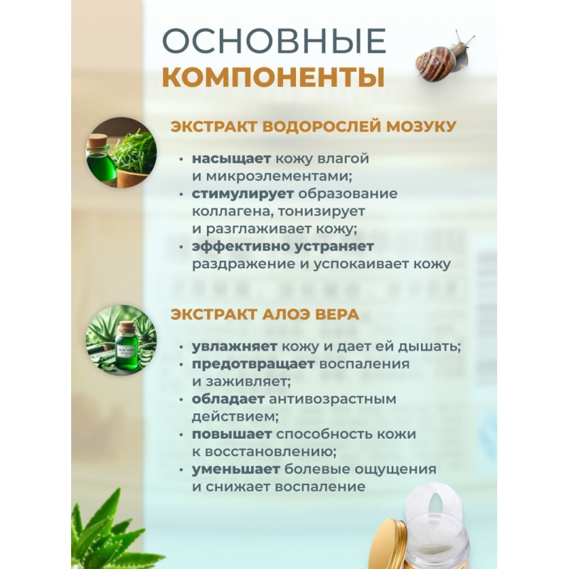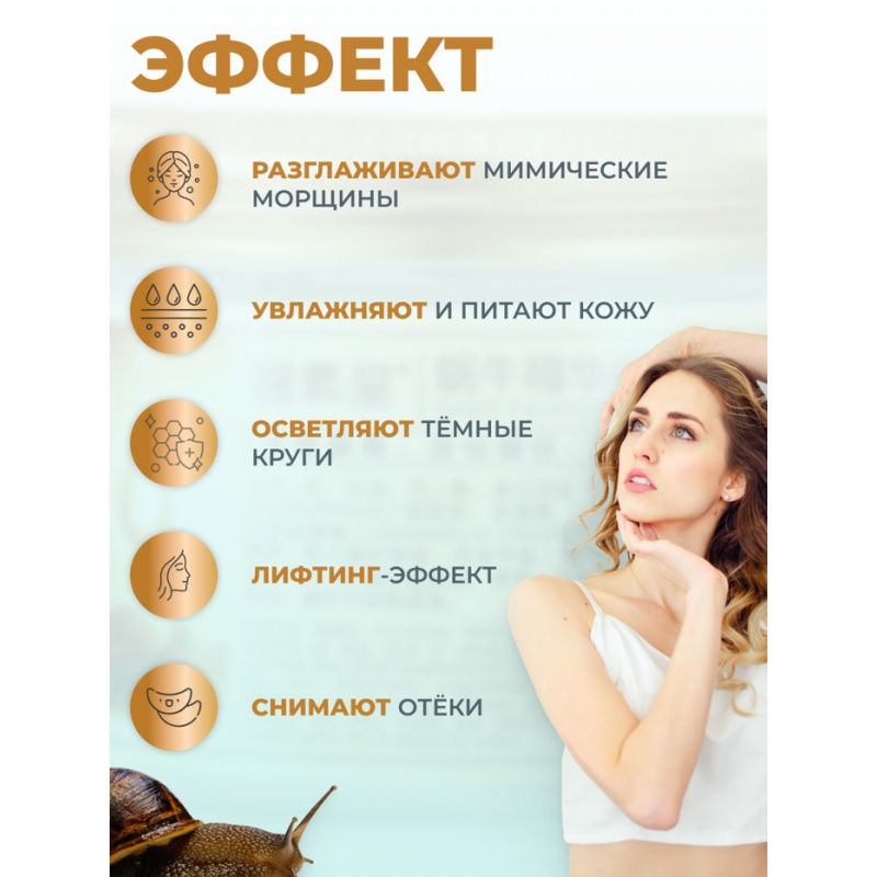 Тканевые патчи для глаз с муцином улитки и экстрактом алоэ BisutangЭти патчи — идеальное средство для борьбы с отёками и тёмными кругами под глазами. Благодаря активным компонентам, они разглаживают мимические морщины, увлажняют и питают кожу, придавая ей свежий и ухоженный вид. Преимущества: Разглаживают мимические морщины и уменьшают их выраженность. Увлажняют и питают кожу, устраняя сухость и шелушение. Осветляют тёмные круги под глазами и освежают взгляд. Обеспечивают лифтинг-эффект, делая кожу более упругой. Эффективно снимают отёки. Основные компоненты: Фильтрат секреции улитки — восстанавливает и укрепляет кожу, повышает её упругость. Экстракт вирджинского гамамелиса — успокаивает кожу и уменьшает отёки. Экстракт водорослей мозуку — насыщает кожу минералами, увлажняет и укрепляет. Экстракт алоэ вера — глубоко увлажняет, снимает раздражения и освежает кожу. Зоны применения: Область лба: уменьшают выраженность и глубину морщин на лбу и в межбровной зоне. Зона вокруг глаз: снимают отёки, осветляют тёмные круги и освежают взгляд. Носогубная складка: уменьшают глубину и выраженность мимических морщин. Шея: омолаживают кожу, делая её более гладкой и упругой. Результат: Гладкая, увлажнённая и упругая кожа. Уменьшение глубины морщин и мимических линий. Свежий и сияющий взгляд без тёмных кругов и отёков. Омоложение кожи в области шеи, лица и глаз. Способ применения: 1. Очистите кожу лица. 2. Нанесите патчи на выбранные зоны: под глаза, на лоб, носогубные складки или шею. 3. Оставьте на 15–20 минут для воздействия. 4. Снимите патчи, а остатки эссенции мягко вмассируйте в кожу. Попробуйте тканевые патчи с муцином улитки и экстрактом алоэ уже сегодня! Они станут вашим незаменимым помощником в уходе за кожей, возвращая ей свежесть и молодость.Комментарии к товару