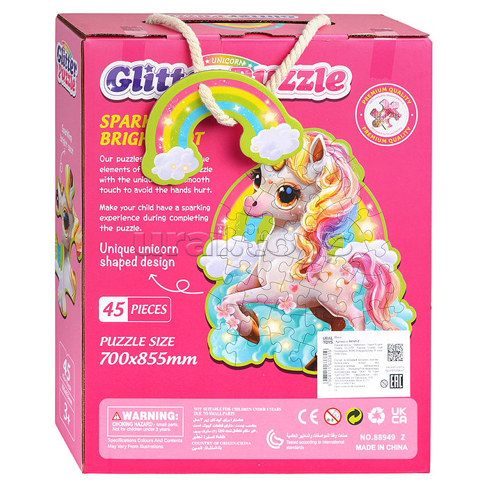 Код: 487684 Штрихкод: 6904111633819 Страна производитель: Китай Размеры упаковки: 8 x 24 x 30 см Количество в коробке: 18 • В наборе 45 деталей с пазловым замком. • Размеры картинки: 70х85.5 см. • Материал: картон. • Соответствует требованиям безопасности продукции. • Для детей от 3-х лет. Комментарии к товару