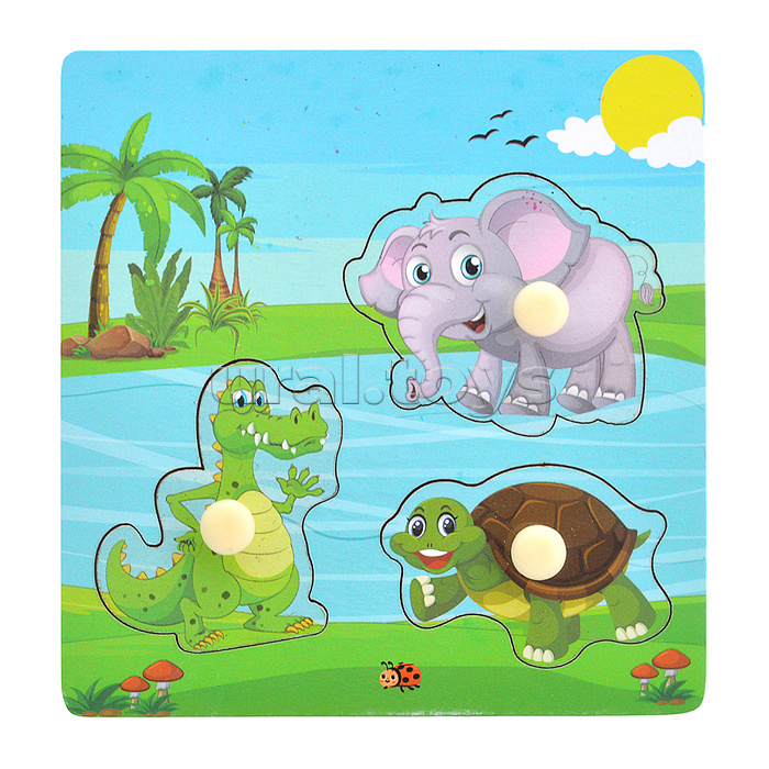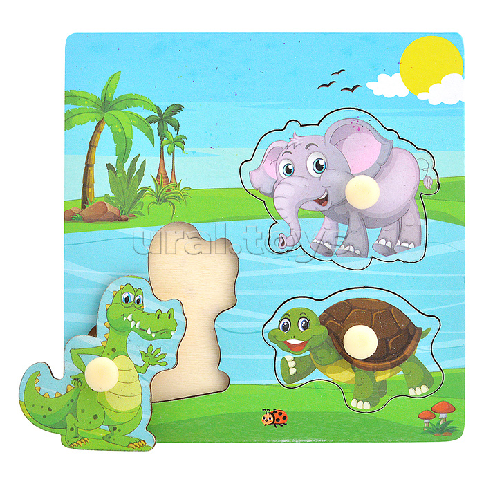 В наборе: - рамка (11х11 см.) - 3 фигурки-вкладышей. Материал: дерево. Соответствует требованиям безопасности продукции. Для детей от 3-х лет.