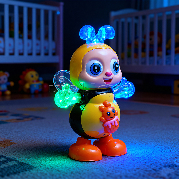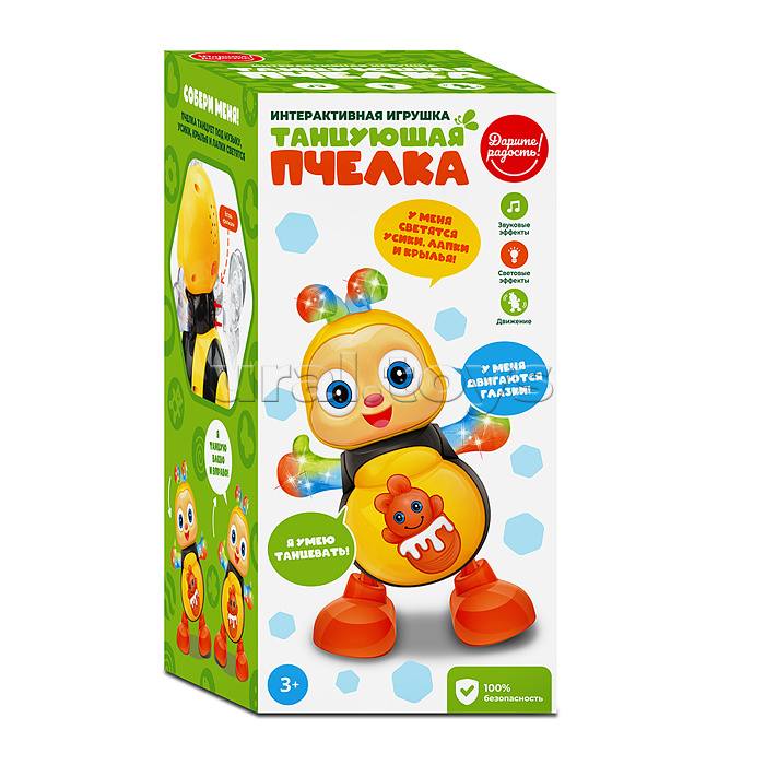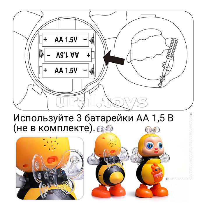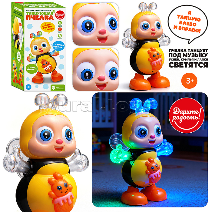 • Размеры игрушки: 13х10х21 см. • Функции: - подсветка. - двигает глазами. - танец под энергичную мелодию. • Для работы нужны 3 батарейки "АА" (не входят в комплект) • Материал: пластик. • Соответствует требованиям безопасности продукции. • Для детей от 3-х лет.