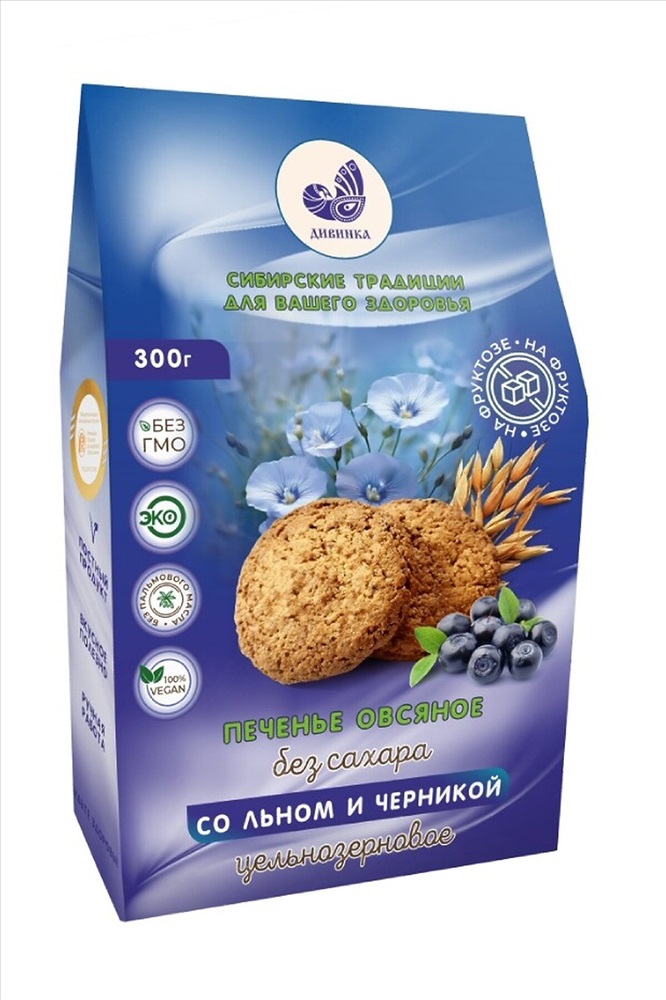 Печенье овсяное ц/з с льном, отрубями и черникой на фруктозе 300г ЭКОПРОДУКТЫ, 1182558